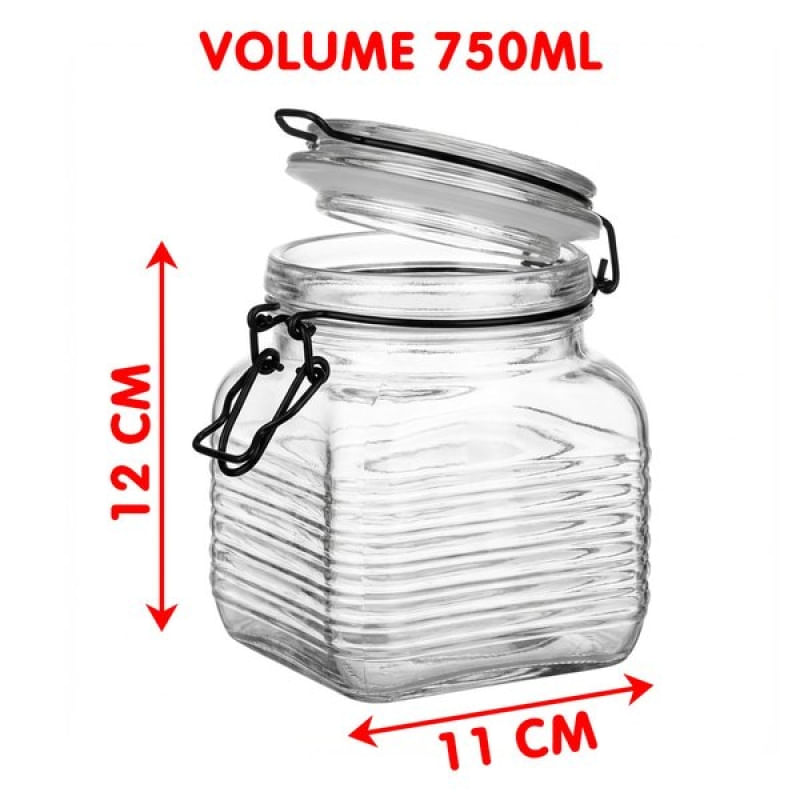 Potes Hermético Porta Mantimentos Vidro Clipe 750ml Kit 4pçs - Mantenha seus alimentos sempre frescos e organizados com este pote hermético de vidro, ideal para armazenar mantimentos do dia a dia com praticidade e estilo! Características do Produto: Capacidade: 750ml Material: Vidro resistente de alta qualidade Tampa com fechamento hermético e clipe metálico, garantindo vedação completa Transparente: facilita ver o conteúdo e controlar o nível rapidamente Design elegante que combina com qualquer cozinha Medidas: Altura 12cm x Largura 11cm Embalagem: Kit 4 Potes Hermético Vidro De 750ml Características Gerais do Produto: • Material: Vidro • Modelo: Pote Hermético • Cor: Transparente • Dimensões aproximadas: Altura 12cm x Largura 11cm • Capacidade em litros: 750ml Garantia: • Garantia contra avarias no transporte