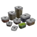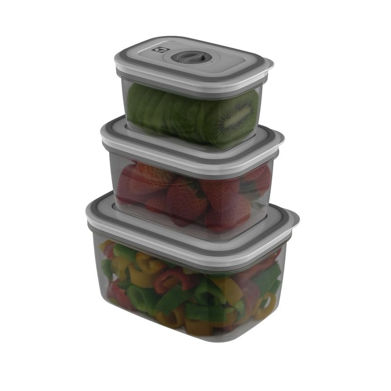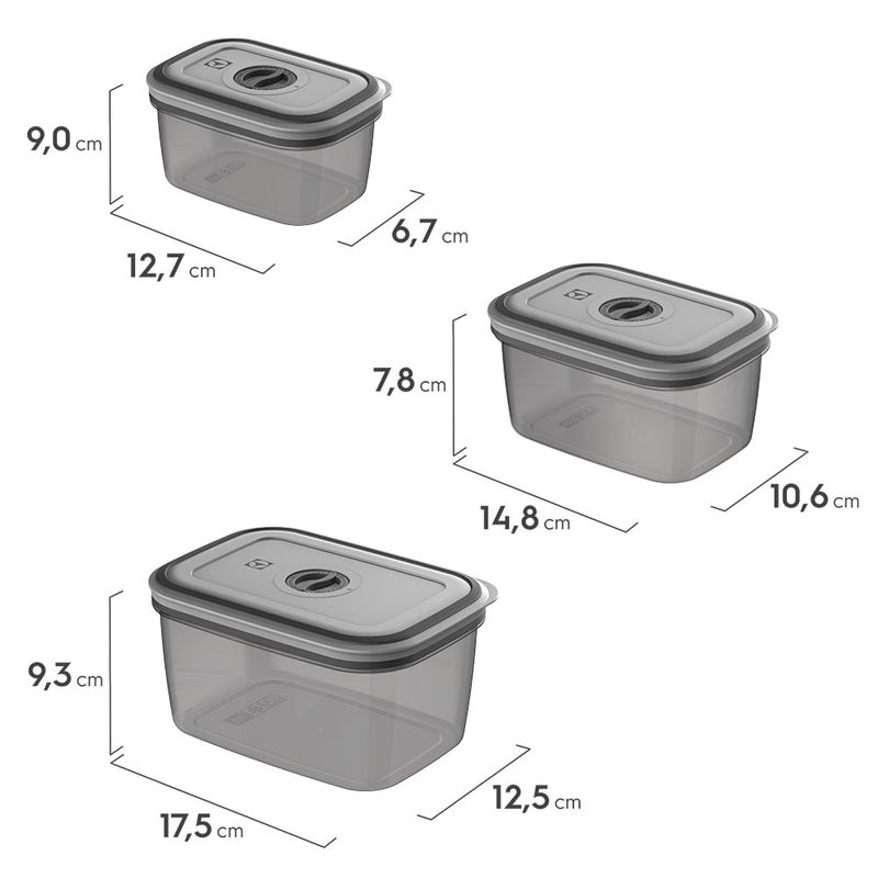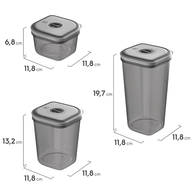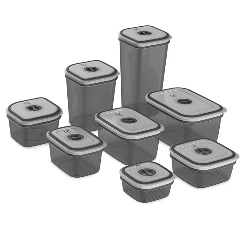 Com design moderno, feitos com material de alta qualidade e livres de BPA, os potes herméticos de plástico Electrolux conservam os os alimentos por mais tempo, evitando o desperdício, além de garantir ainda mais beleza para sua cozinha e organização na sua rotina. MÁXIMA ORGANIZAÇÃO Formatos inteligentes com tamanhos funcionais e empilháveis que facilitam a organização na sua cozinha. VEDAÇÃO HERMÉTICA Com anel de silicone, possuem selagem perfeita que ajuda a preservar e conservar os alimentos e nutrientes por mais tempo. PRATICIDADE E SEGURANÇA Feito com material próprio para armazenar alimentos e livre de BPA, conta com tampa de fácil abertura e registro de data para controle de armazenamento. Contém: Kit com 8 Potes Herméticos de Plástico Cinza Escuro 1x Pote (95mm x 95mm x 47mm) 1x Pote (118mm x 118mm x 58mm) 1x Pote (118mm x 118mm x 68mm) 1x Pote (118mm x 118mm x 132mm) 1x Pote (118mm x 118mm x 197mm) 1x Pote (127mm x 90mm x 67mm) 1x Pote (148mm x 106mm x 78mm) 1x Pote (175mm x 125mm x 93mm)