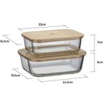 Os Potes Herméticos Refratários com Tampa de Bambu Electrolux contam com vedação hermética com anel de silicone, o que garante selagem perfeita que evita vazamentos no seu freezer e refrigerador, além de manter os ingredientes com frescor e crocância por muito mais tempo. Outros benefícios incluem: Tampa de bambu contém agentes bactericidas que previnem o aparecimento de fungos e bactérias - Vidro borossilicato resistente a altas temperaturas e livre de BPA - Pode ser usado em fornos a gás e elétrico, micro-ondas, lava-louças e freezer - Tampa com vedação de silicone para selagem perfeita - Tampas servem como apoio e tábuas de corte - Design sofisticado - Armazenam alimentos e ingredientes com visualização facilitada *A cor das tampas de bambu pode variar conforme as características da matéria-prima. Contém: 1x Pote 7cm x 22cm x 16,5cm - 1,520 litros 1x Pote 8cm x 24,5cm x 19,5cm - 2,260 litros
