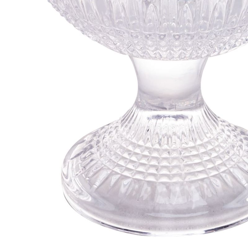 Design Majestoso e SofisticadoO Potiche Decorativo em Cristal com Pé Queen, medindo 11cm x 18cm, da Wolff, é uma peça que impressiona pela sua elegância e beleza. Com seu design refinado e cristal transparente, ele permite que a luz crie reflexos encantadores, tornando-se um verdadeiro destaque decorativo em qualquer ambiente.Base Elevada com Pé QueenO pé Queen adiciona um toque de nobreza e estabilidade ao potiche, elevando-o de forma graciosa. Essa base sofisticada destaca a peça e confere um ar majestoso à decoração, complementando espaços com um toque clássico e refinado.Versatilidade para Diferentes DecoraçõesEste potiche é perfeito para compor mesas de centro, aparadores ou estantes, onde pode realçar pequenos arranjos florais, pedras decorativas ou ser exibido como uma peça decorativa exclusiva. Sua versatilidade permite que ele harmonize com variados estilos de decoração.Cristal de Alta Qualidade e Acabamento ImpecávelFabricado em cristal de alta qualidade, o Potiche Decorativo com Pé Queen é uma expressão do padrão premium da Wolff. Cada detalhe é trabalhado com precisão para oferecer uma peça que combina sofisticação e durabilidade, sendo uma escolha perfeita para quem busca itens decorativos de luxo.Wolff. A excelência em decorar com estilo e elegância!