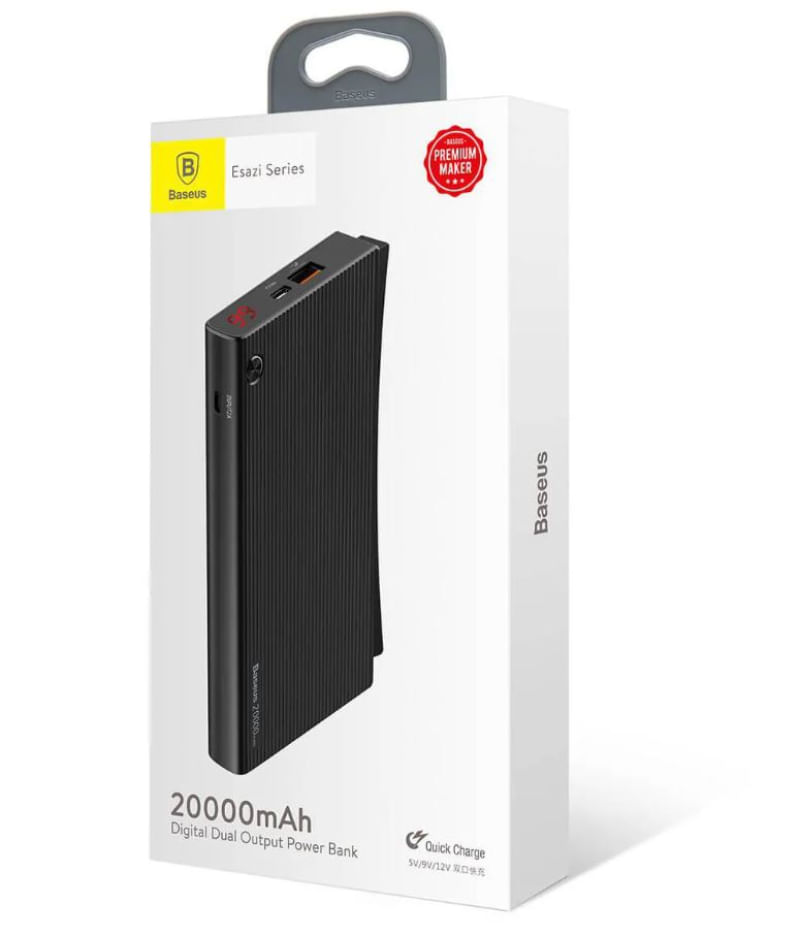 O Power Bank Baseus Esazi é uma bateria externa de alta capacidade, ideal para quem precisa manter seus dispositivos carregados durante o dia. Com 20.000mAh, ele oferece múltiplas recargas para smartphones, tablets, fones de ouvido e outros eletrônicos. Conta com tecnologia de carregamento rápido (Quick Charge 2A), garantindo mais agilidade na hora de recuperar a carga dos seus dispositivos. Seu design é moderno e compacto, fácil de transportar na mochila ou bolsa. Possui múltiplas portas de saída USB, permitindo carregar dois dispositivos ao mesmo tempo. Além disso, tem indicadores LED que mostram o nível de carga da bateria, facilitando o acompanhamento do uso. É uma ótima opção para viagens, trabalho, estudos ou qualquer situação em que você precise de energia extra longe de uma tomada.