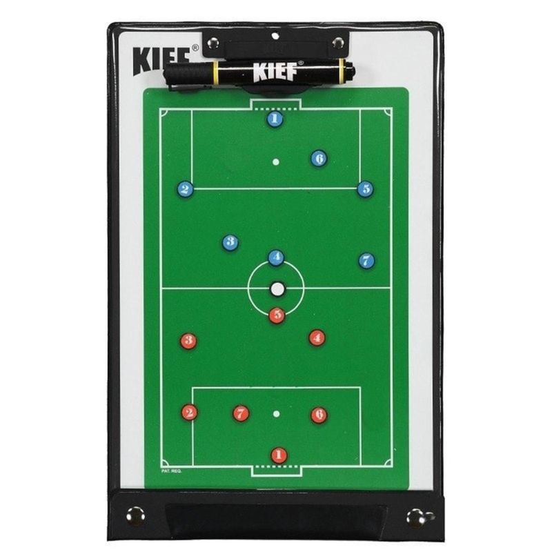 DescriçãoCom a prancheta magnética da Kief, você cria suas táticas de jogo e instrui sua equipe com estratégias, para assim, controlar o jogo. Fabricada em metal, a peça traz acabamento em plástico, proporcionando durabilidade e resistência. Contém suporte para encaixe da caneta. Traz caneta na cor preta e conta com fita aderente, que funciona como apagador. Por fim, a prancheta conta também com peças de plástico com imãs, que simulam os jogadores e a bola.Modelo: Magnética Society;Marca: Kief;Composição: Prancheta em PVC rígido;Modalidade: Futebol Society;Tabela de MedidasDimensões aproximadas (A x L): 36,5 cm X 23,5 cm