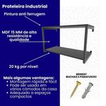 Prateleira Industrial Suspensa Estante Parede Nicho Preto Cozinha Escritorio Sala Quarto InfantilAdicione um toque industrial à sua casa com este elegante móvelEste móvel apresenta um design robusto e contemporâneo que combina perfeitamente com o estilo industrial. Feito com aço e MDF este móvel é durável e resistente, garantindo anos de uso.As dimensões tornam este produto ideal para sua utilização e decoração do seu ambiente. Você terá amplo espaço para organizar seus pertences de maneira eficiente.O acabamento do mdf é fino adiciona um toque de sofisticação ao seu espaço, enquanto os detalhes industriais, como aço pintado em pintura epoxy, dão um charme único a este móvel. Este é o complemento perfeito para sua sala de estar, quarto, escritório ou qualquer ambiente que deseje transformar.Características principais:Material resistente: Aço e MdfDesign industrial eleganteAcabamento do aço em PretoSuporta até 20 kg por nivelTransforme sua casa com estilo e funcionalidade! Adquira este incrível móvel hoje e dê um toque único ao seu espaço.Dúvidas Frequentes:1 – O produto é resistente?Resposta: Sim, nossas peças são fabricadas com MDF de alta resistência, cada nível de prateleira suporta até 20kg e a pintura é antiferrugem.Quem SomosA BeB Móveis é uma empresa comprometida em facilitar a organização de ambientes. Nós acreditamos que um espaço organizado é fundamental para o bem-estar e produtividade das pessoas.Por isso, oferecemos soluções personalizadas e de qualidade para nossos clientes.Prezamos pelo crescimento de maneira sustentável e com base em nossos valores de respeito, integridade e empatia, buscamos sempre oferecer um atendimento excepcional aos nossos clientes, com transparência e ética. Marca: BeB | Modelo: incbp02prt2 | Cor: Preto | Material: Aço e Mdf | Peso máximo suportado: 30 kg