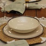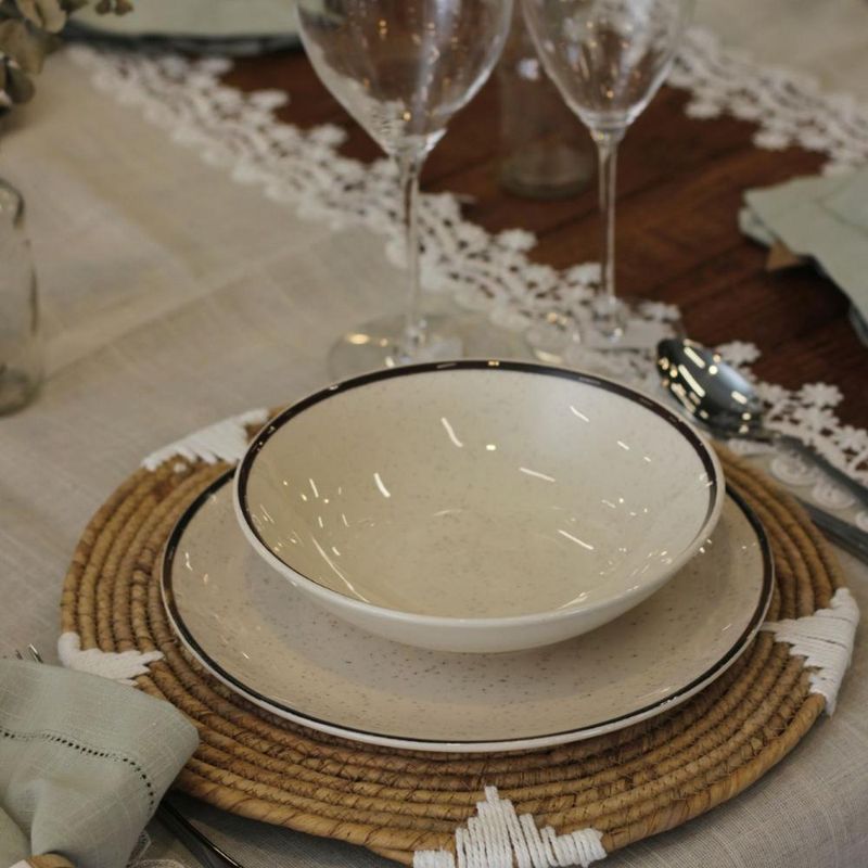 Prato Fundo Convencional 20,5 cm Brisa Cerâmica Oxford Vento no rosto, o som do mar e a areia aos pés, assim é a brisa perfeita de verão. Pensando em trazer essa sensação para dentro de casa, a coleção Brisa recebe a decoração de pequenos detalhes em preto em todo a peça, representando os grãos de areia. As bordas de cada item da coleção recebem a aplicação de um fino filete na cor marrom, remetendo aos materiais naturais como o bambu e a corda. Inspirados na vertente do design biofílico que busca conectar as pessoas com os benefícios trazidos pela presença da natureza em ambientes e na criação de produtos, apresentamos uma coleção com inspiração natural, trazendo seus elementos mais representativos para um dia a dia mais tranquilo. Descrição do produto Marca: Oxford Linha: Brisa Material: Cerâmica Diâmetro: 20,5 cm Resistente a micro-ondas Resistente a lava-louças Imagens meramente ilustrativas, todos os itens que ambientam o produto não estão inclusos.