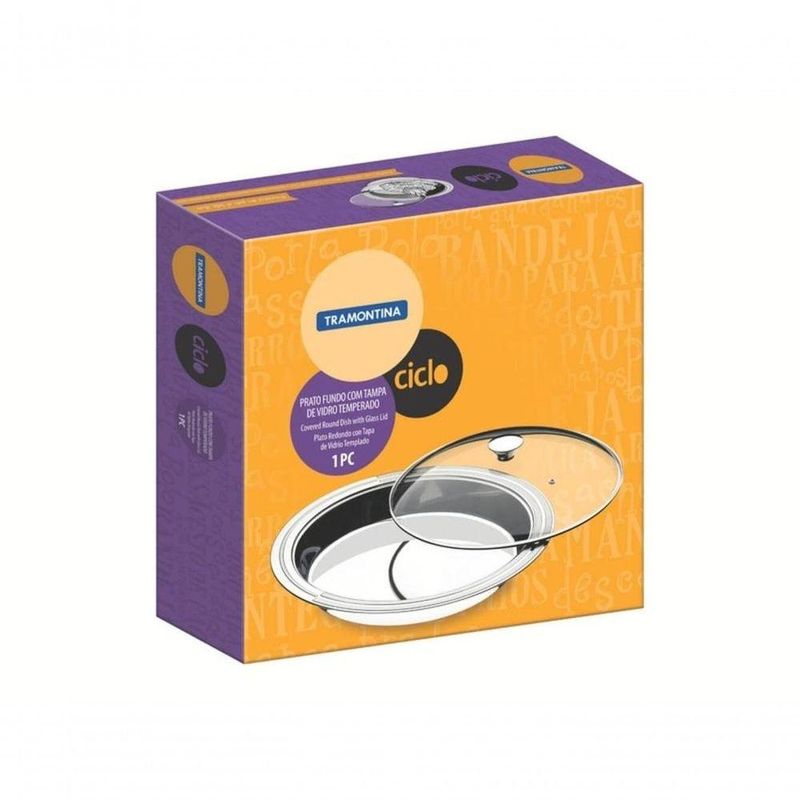 Prato Fundo Tramontina Ciclo 39cm Em Aço Inox Com Tampa De VidroServir bem é um verdadeiro presente para o dia-a-dia. Travessas, baixelas e saladeiras recebem, com bom gosto e beleza, os pequenos prazeres da culinária. É a Tramontina cuidando de todos os detalhes para que as refeições sejam sempre únicas.Recomendações de Uso:Antes do uso: Antes de utilizar o , remova as eventuais etiquetas e lave-o com água quente e de uso: Durante a lavagem use somente esponja macia, outros tipos de produtos, como palha de aço, poderão riscar ou prejudicar o brilho do produto. Enxágue bem a peça a fim de remover totalmente os resíduos dos produtos de limpeza, que por serem abrasivos, podem danificar o inox. Após a lavagem enxugue-o, pois as substâncias químicas contidas na água poderão causar manchas. Sempre que possível use água quente, pois renova o brilho do produto. Evite o da peça com superfícies quentes, pois podem provocar a descoloração do produto. Quando usar a máquina de lavar louça, recomendamos retirar o produto logo que tenha terminado o ciclo enxaguar, a fim de que o mesmo seja secado manualmente.- Foto meramente ilustrativa.- Embalagem litografada.Informações Adicionais:- Utensílio totalmente feito em aço inox, altamente durável e de fácil limpeza.- Proporciona um requinte ao compor a mesa.- Peça com acabamento do aço em brilho e detalhes em alto relevo fosco nas bordas, própria para o uso diário, combinando com qualquer ambiente.- Possui Tampa de vidro temperado.