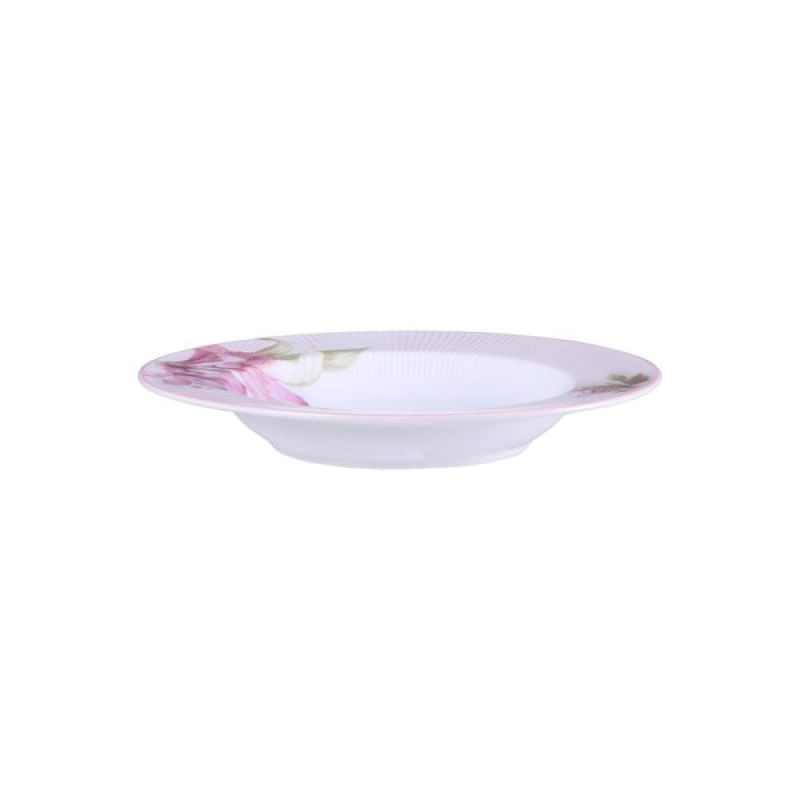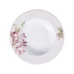 Prato Fundo Tramontina Poème em Porcelana Decorada 23 cm Tramontina - O prato fundo Tramontina em porcelana 23 cm da coleção Poème destaca-se pelos tons suaves de rosa e detalhes florais que proporcionam um toque romântico à mesa. Ideal para sopas e caldos, é prático, delicado e compatível com micro-ondas e lava-louças. Características Gerais do Produto: Garantia: • 3 Meses