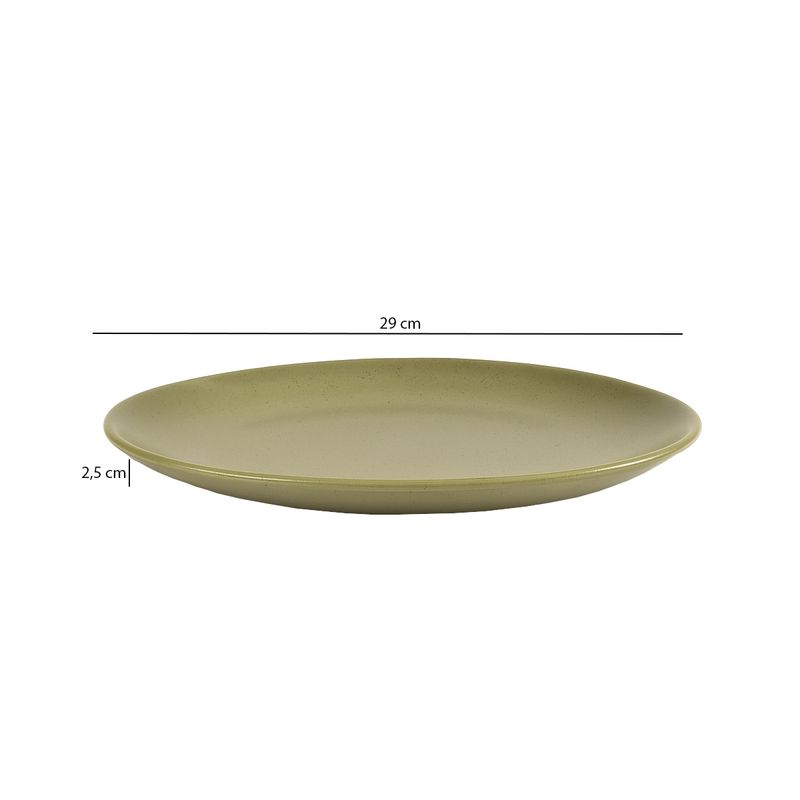Prato Raso Coup Organic Olive de Cerâmica 29cm 6 Unidades - Alleanza 7577-201 Transforme suas refeições em momentos especiais com o Conjunto de 6 Pratos Rasos Coup Organic Olive Acetinado Alleanza. Com design Coup elegante e formas arredondadas, cada prato traz um toque de sofisticação e harmonia natural à sua mesa. Fabricados em cerâmica de alta qualidade, são resistentes, duráveis e ideais para servir com charme e praticidade. O acabamento acetinado proporciona textura suave e brilho sutil, enquanto a inspiração na natureza adiciona frescor e elegância à sua experiência gastronômica. Perfeito para quem valoriza beleza, qualidade e funcionalidade na hora de receber e servir. Características do Produto: Fabricante: Alleanza Cor: Verde Quantidade de Pratos: 6 Tipo de Design: Coup Tipo de Acabamento: Acetinado sofisticado Material do Produto: Cerâmica Feldspática Produto da renomada marca Alleanza Tonalidade: Olive Produto Libera Substâncias Tóxicas: Não Pode ser levado ao micro-ondas e lava-louças: Sim Tipo de Embalagem: Caixa Parda Dimensões do Produto: Altura: 2,5 cm Diâmetro: 29 cm Peso aproximado da un: 0,938gr Garantia: 90 dias contra defeitos de fabricação Imagem meramente ilustrativa. Não oferecemos garantia para defeitos acarretados por negligência ou uso inadequado de nossos produtos.