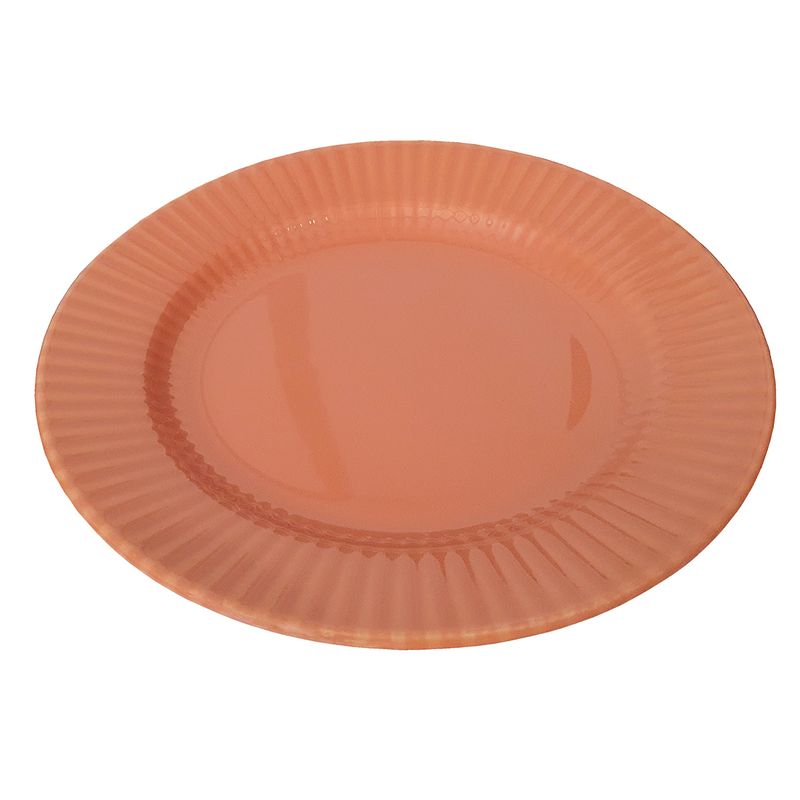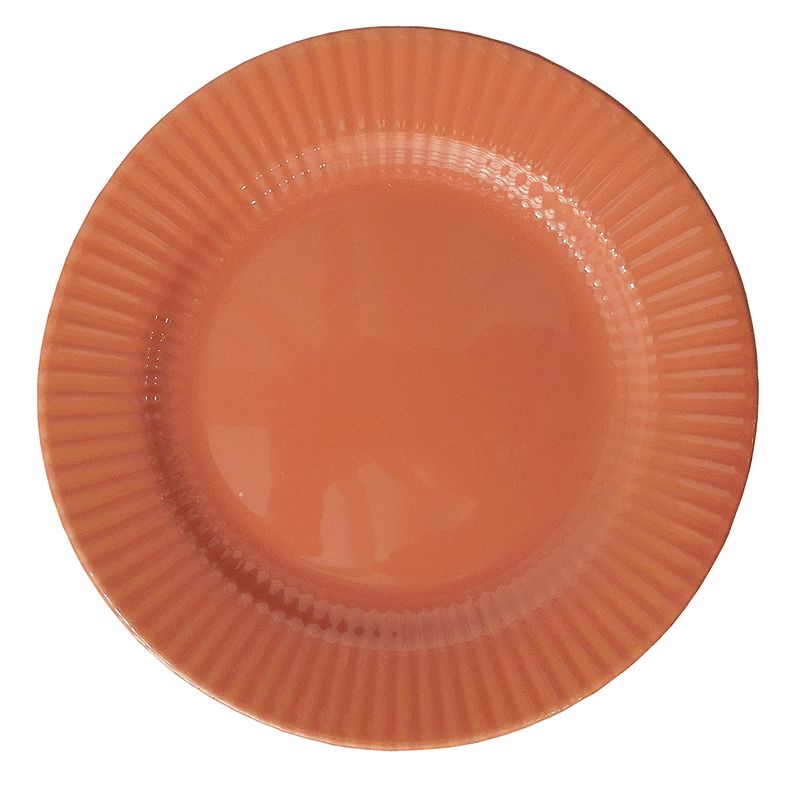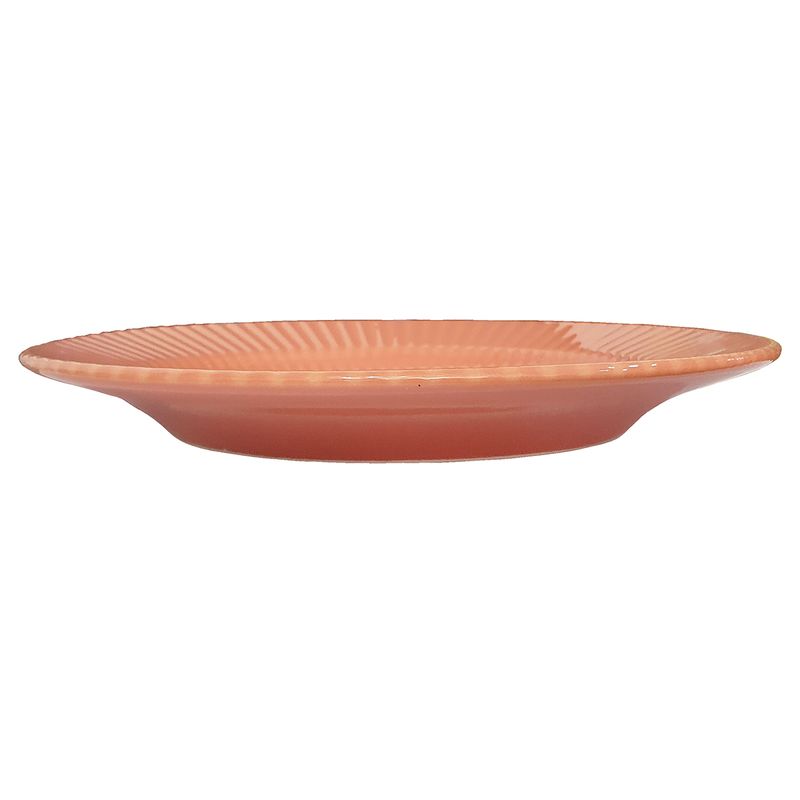 Prato Raso de Cerâmica Canelé Salmão 24cm 1 Unidade - Biona 135786 O doce francês Canelé inspirou a coleção que leva o seu nome. A iguaria ganhou o coração dos franceses por ser feita de maneira simples, já que o destaque fica para o seu formato canelado, relevo que foi aplicado na aba dos pratos da coleção. Na decoração Salmão, o tom suave de laranja inspira a imaginação e deixa a mesa posta mais aconchegante. Características do Produto: Fabricante: Oxford Marca: Biona Material do Produto: Cerâmica Tipo: Raso Cor: Salmão Conteúdo da Embalagem: 1 Unidade Uso: Resistente a micro-ondas e resistente a lava-louças Linha: Canelé Formato: Redondo Diâmetro: 24 cm Altura: 3 cm Garantia de Fabricação: 90 dias (Defeitos de fabricação). Recomendações de uso: Ao usar o produto pela primeira vez, lavar bem a peça com esponja macia e sabão neutro; Lavar as peças utilizando esponja macia e sabão neutro; Não levar as peças ao forno; Não submeter as peças a chama direta. Todas as imagens são meramente ilustrativas.