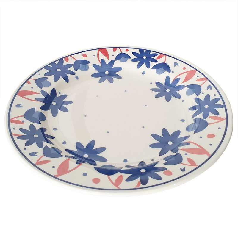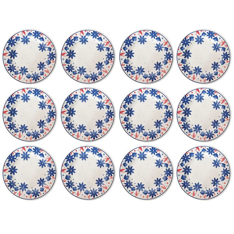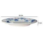 Prato Raso de Cerâmica Donna Sossego 24cm 12 Unidades - Biona 135735 As flores são sinônimo de beleza e delicadeza. Na coleção Donna Sossego, pequenas flores em azul cobalto são aplicadas nas abas dos pratos com detalhes em rosa, formando um lindo jardim. A serenidade da decoração inspira momentos de calmaria e puro sossego. Características do Produto: Fabricante: Oxford Marca: Biona Material do Produto: Cerâmica Tipo: Raso Cor: Branco e Azul Conteúdo da Embalagem: 12 Unidades Uso: Resistente a micro-ondas e resistente a lava-louças Linha: Sossego Formato: Redondo Diâmetro: 24 cm Altura: 3 cm Garantia de Fabricação: 90 dias (Defeitos de fabricação). Recomendações de uso: Ao usar o produto pela primeira vez, lavar bem a peça com esponja macia e sabão neutro; Lavar as peças utilizando esponja macia e sabão neutro; Não levar as peças ao forno; Não submeter as peças a chama direta. Todas as imagens são meramente ilustrativas.