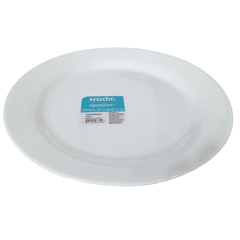 Prato Raso Menu de Vidro Opaline 26,5cm 6 unidades - Nadir 5543 O Jogo de Pratos Rasos Manu é perfeito para tornar suas refeições mais praticas e para dar um visual leve e bonito a sua mesa. Os pratos são ideias para servir refeições, das simples às mais sofisticadas. Produzidas em vidro branco temperado, proporcionando maior resistência a impactos, além de muito higiênicas por não terem porosidade. Gostou? Então aproveite e garanta agora mesmo o seu! Características do Produto: Fabricante: Nadir Figueiredo. Linha: Opaline. Modelo: Menu. Material da Estrutura: Vidro Temperado. Tonalidade: Branco. Quantidade de Peças: 6 unidades. Uso: Resistente a micro-ondas, resistente a lava-louças. Tipo: Raso. Formato: Redondo. Altura: 2 cm. Diâmetro: 26,5 cm. Dica de uso e preservação: Para limpeza, remova a sujeira com uma esponja macia, tire todo o resíduo de sabão e seque bem. Não utilize abrasivos ou utensílios pontiagudos. Submeter o vidro a mudanças bruscas de temperatura pode causar choque térmico e danificar seu produto. Evite impactos.