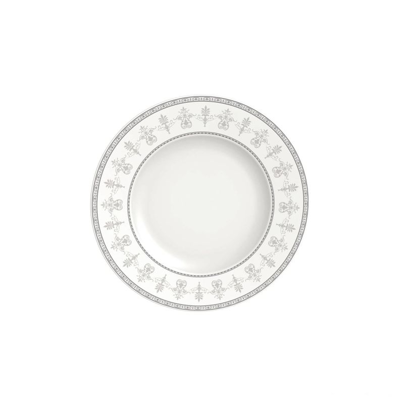 Prato Raso Tramontina Gabrielle Porcelana Decorada 28cm Tramontina - Prato Raso Tramontina Gabrielle em Porcelana Decorada 28 cm Sua mesa ficará encantadora e com um toque clássico através do prato raso Tramontina Gabrielle em porcelana decorada 28 centímetros de diâmetro. Perfeito para fazer parte das suas refeições mais especiais, ele tem desenhos inspirados em rendas costuradas a mão e detalhes delicados em tecidos, homenageando todas as mulheres estilistas e profissionais da moda. Sua porcelana é tradicional e exclusiva Tramontina, translúcida e de alta tecnologia, além de ter todas as características indispensáveis para uma porcelana de verdade: excelente brancura, brilho, alta resistência mecânica e porosidade próxima de zero. Com as porcelanas Tramontina, você deixa suas refeições muito mais completas e cheias de estilo! Fabricado em Porcelana Tradicional Coleção: Gabrielle Cuidados com o produto Ao usar o produto pela primeira vez, lavar bem a peça com esponja macia e sabão neutro;Lavar as peças utilizando esponja macia e sabão neutro;Não levar as peças ao forno;Não submeter as peças a chama direta;Uso de microondas (seguir a orientação conforme etiqueta do produto);Uso de máquina de lavar (seguir a orientação conforme etiqueta do produto). Garantia 90 dias de garantia legal para vícios ou defeitos de fabricação. Características Gerais do Produto: Garantia: • 3 meses Contra defeitos de fabricação
