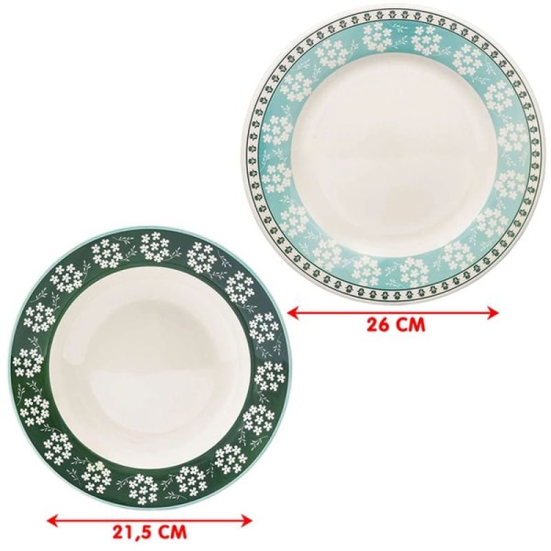 Pratos Raso Fundo Donna Bosque Oxford Jogo 8pçs 4 Pessoas - Delicadeza para encantar no dia a dia. A linha Donna Bosque tem a natureza como estrela principal da decoração, com a estampa de pequenas flores e ramos na aba de cada prato. A proposta é monocromática variando entre tonalidades da cor verde Especificações do produto: Uso: Resistente a micro-ondas, Resistente a lava-louças Cor: Off White, Verde água, Verde escuro Material: Cerâmica Linha/Decoração: Donna Bosque Formato: Redondo Marca: Biona Fabricado por: Oxford Conteúdo do pacote: 4x Pratos Rasos Donna Bosque 26cm 4x Pratos Fundos Donna Bosque 21,5cm Características Gerais do Produto: • Material: Cerâmica • Modelo: Donna Bosque • Cor: Verde • Dimensões aproximadas: Raso 26cm / Fundo 21,5cm Garantia: • Garantia contra avarias no transporte