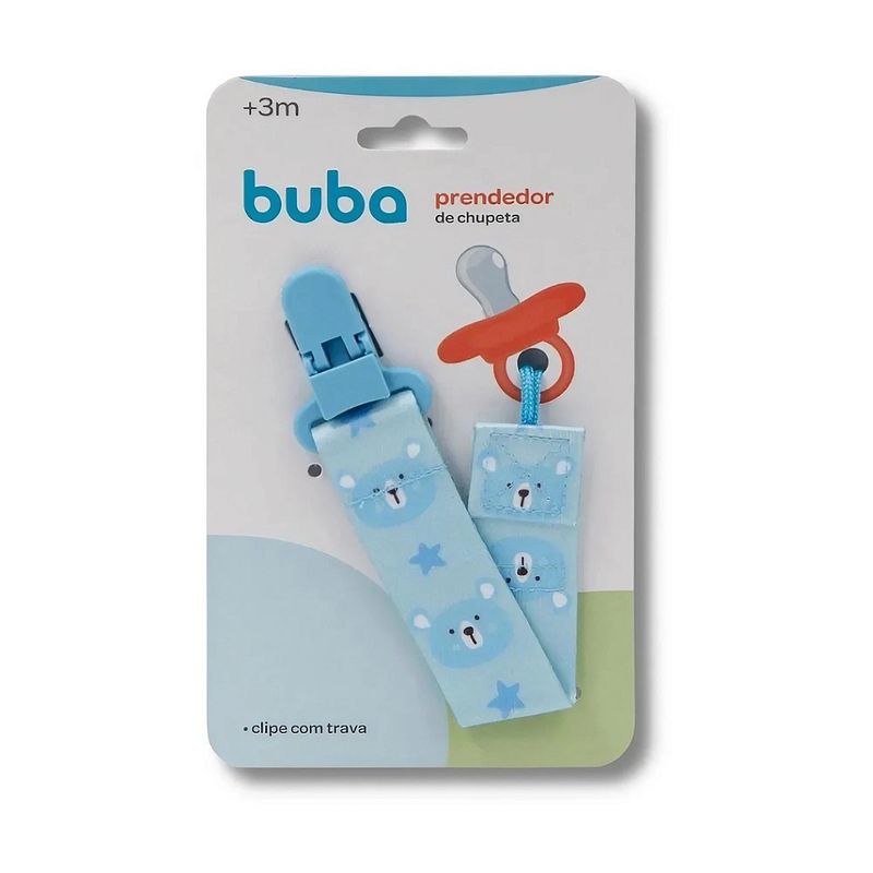 Prendedor de Chupeta Ursinho Azul - Buba O Prendedor de Chupeta Ursinho da Buba é seguro e evita a perda e queda da chupeta, além de deixá-la sempre ao alcance da criança. Composição: - Alça: 100% Poliéster - Prededor: 100% polipropileno -Cordão: 100% poliamida Conteúdo da embalagem: - Prendedor de Chupeta Ursinho da Buba Medidas da Embalagem: 17cm x 10cm x 1cm Peso da Embalagem: 0.01kg