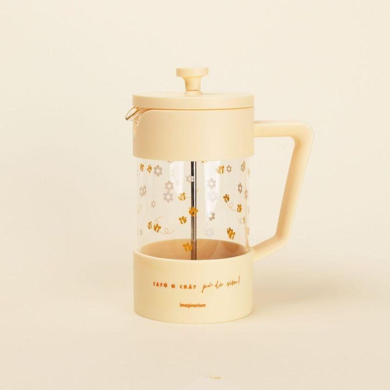 Prensa Francesa Café E Chá Pode SimSuper charmosinha e perfeita para você preparar aquele café fresquinho ou o seu chá favorito, nossa Prensa Francesa Café e Chá Pode Sim chegou trazendo uma boa dose de bom gosto para o seu dia a dia.Toda na cor bordô e tendo capacidade para 700 ml, essa belezinha conta com estilo e praticidade de sobra para você que não abre mão de tomar uma bebida quentinha e acolhedora.Para preparar o seu cafezinho, basta acrescentar o pó de café (moagem média ou grossa), água quente (entre 90 - 95 C), aguardar por no máximo 4 minutos e pronto! É só empurrar a haste de aço inox e se deliciar com o seu cafezinho feito na hora.Contém 1 prensa francesa e 1 manual de instruções.Não podem ser vendidos separadamente.Composição: vidro borossilicato, aço inoxidável e plástico.Dimensão: 9 cm x 14 cm x 18,5 cm.Capacidade: 700 ml.Para utilizar a prensa francesa corretamente, de preferência a cafés especiais de moagem média ou grossa, ou cafés próprios para prensa francesa.Não coloque o produto na geladeira, nem no congelador.Evite mudanças bruscas de temperatura. O produto pode quebrar o trincar.Cuidado ao consumir bebidas quentes.Choques ou quedas podem danificá-lo.Validade indeterminada.Referência - PI7347YFunção - ESQUELETOExclusivo - IMAGINARIUM