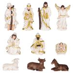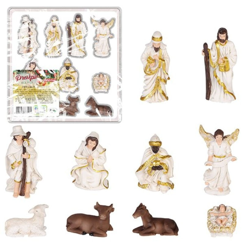 Presépio Decoração Nascimento De Jesus Estatueta Com 10Pçs - Presépio Completo com 10 Peças - Tradição e Encanto para Seu Natal! Transforme o seu Natal com este lindo presépio composto por 10 peças detalhadas e encantadoras! Ideal para quem busca uma decoração tradicional e cheia de significado. Cada figura é cuidadosamente elaborada para trazer a magia do nascimento de Jesus para a sua casa. ESPECIFICAÇÕES: COR: Dourado, Branco e Preto; MATERIAL: Resina; USO INDICADO: Decoração Natalina; MEDIDAS DAS PEÇAS: ANJO: 9CM; ANIMAIL 1: 3X5CM; ANIMAIL 2: 3X5CM; ANIMAIL 3: 3X3CM; MENINO JESUS: 3X4CM; MARIA: 6CM; REI MAGO 1: 7CM; REI MAGO 2: 9CM; REI MAGO 3: 9CM; JOSÉ: 9CM; CONTEÚDO DA EMBALAGEM: 1 Presépio Decorativo com 10 Peças Soltas; Características Gerais do Produto: • Material: Resina • Modelo: Presépio • Cor: Branco; Dourado; Preto • Dimensões aproximadas: Altura 5cm X Largura 21cm x Comprimento 21cm ( CAIXA ) Garantia: • Garantia do site - 1 Mês