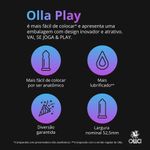 O que é a Camisinha Olla Play + Fácil de Colocar? A Olla, referência nacional em saúde e bem-estar sexual, apresenta o preservativo Olla Play + Fácil de Colocar – uma inovação pensada para proporcionar mais conforto, praticidade e prazer durante a relação. Com um design moderno, formato anatômico e mais lubrificação, essa camisinha oferece um ajuste perfeito ao corpo, facilitando a colocação e garantindo uma experiência mais natural e estimulante. Para que serve o Preservativo Olla Play + Fácil de Colocar? O preservativo Olla Play é indicado para quem busca sexo seguro, confortável e com mais sensibilidade. Sua principal função é prevenir infecções sexualmente transmissíveis (ISTs) e evitar gravidez indesejada, promovendo proteção e prazer ao mesmo tempo. Graças à sua lubrificação extra e ao formato anatômico, ele melhora a sensibilidade durante o contato íntimo, tornando a experiência mais prazerosa para o casal. Principais Benefícios Mais facilidade na hora de colocar, sem complicações Lubrificação intensificada, que proporciona uma relação mais suave e prazerosa Formato anatômico, para melhor encaixe e conforto Redução de atrito e desconforto, evitando irritações Fabricado com látex de alta qualidade, para garantir segurança durante o uso Produto não testado em animais Método eficaz de prevenção contra ISTs e gravidez não planejada Indicação de Uso Abra a embalagem apenas no momento da relação. Caso esteja violada, não utilize o produto. Composição Feito com látex de borracha natural, lubrificado com óleo de silicone. Conteúdo da Embalagem 3 preservativos Olla Play + Fácil de Colocar Modo de Uso Abra o envelope pelo picote vertical, no momento da utilização. Não use objetos cortantes para abrir a embalagem. Com o pênis ereto, coloque o preservativo apertando a ponta para eliminar o ar. Desenrole até a base do pênis. Após a ejaculação, retire o preservativo com cuidado, segurando pela borda. Descarte o preservativo em local apropriado. Nunca jogue no vaso sanitário. Utilize um novo preservativo a cada relação sexual.
