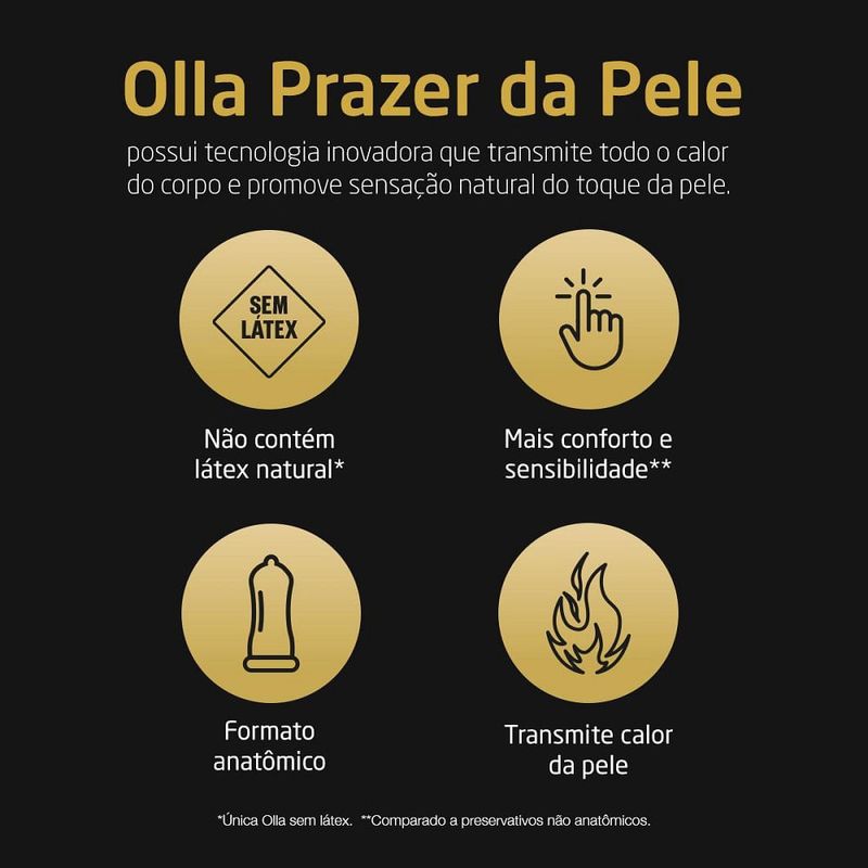 O que é o Preservativo Olla Prazer da Pele? O Olla Prazer da Pele é um preservativo inovador sem látex, desenvolvido com tecnologia de ponta para proporcionar uma experiência mais natural durante a relação sexual. Produzido em poli-isopreno e lubrificado com óleo de silicone, possui formato anatômico, que se ajusta perfeitamente ao corpo, garantindo conforto e liberdade. Para que serve? Este preservativo masculino Olla foi criado para simular o toque da pele, promovendo uma sensação mais realista e prazerosa durante o ato sexual. Sua fórmula e estrutura transmitem o calor corporal de forma eficaz, favorecendo momentos mais intensos e conectados. Benefícios Sem látex: ideal para quem possui alergia ou sensibilidade ao material. Sensação natural: proporciona uma experiência próxima ao toque da pele, com maior percepção de prazer. Formato anatômico: se ajusta com precisão ao pênis, promovendo conforto e melhor desempenho. Transmissão de calor: intensifica a conexão entre o casal, graças à capacidade de conduzir o calor natural do corpo. Discrição no uso: tão confortável que você pode até esquecer que está usando. Versatilidade: ideal para encontros espontâneos ou momentos íntimos de profunda conexão. Segurança garantida: além do prazer, protege contra infecções sexualmente transmissíveis (ISTs) e previne gravidezes indesejadas. Como usar o Olla Prazer da Pele? Abra a embalagem com cuidado pelo picote lateral, somente no momento da relação. Evite o uso de objetos cortantes para não danificar o preservativo. Coloque o preservativo no pênis ereto antes de qualquer contato íntimo. Aperte a ponta para retirar o ar e desenrole até a base do pênis. Após a ejaculação, retire o preservativo com o pênis ainda ereto, segurando a borda para evitar vazamentos. Descarte o preservativo em local apropriado. Não jogue no vaso sanitário. Use um novo preservativo a cada relação sexual. Olla Prazer da Pele é mais do que um preservativo: é a combinação perfeita entre prazer, conforto e segurança, com tecnologia que valoriza o toque e a conexão entre os corpos. Ideal para quem busca uma experiência íntima mais intensa e envolvente.
