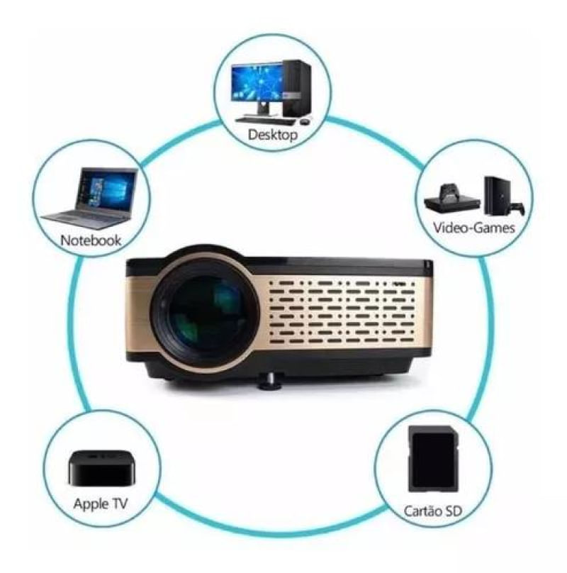 O Projetor LED Smart com Android é ideal para quem precisa fazer grandes apresentações, seja no ambiente corporativo ou em festas. A projeção de imagem é em alta definição, suportando até 1080p e podendo ser projetada em tamanho de até 120 polegadas.Possui entrada USB para conectar pen drives, também pode ser conectado a DVDs, consoles de videogame, câmeras digitais, entre outros. É compatível com vários formatos de áudio, vídeo e imagem, tudo isso controlado pelo sistema inteligente de computador, que ainda realiza autoverificação.O aparelho conta com proteção contra sobrecargas, ajuste de nitidez de imagem, correção trapezoidal óptica, funções sleep, zoom e acompanha controle remoto para realizar as operações com mais autonomia. Pode ser instalado no teto ou sobre mesas, mantendo a mesma qualidade de projeção de imagens.Multi linguagem , e com imagem rotativo 360° e pode ser ajustado as medidas ESPECIFICAÇÕES- Marca Exbom- Tamanho da projeção: até 120 polegadas- Brilho: higt 2000 lumens - Tensão: Bivolt (110V-240V)- Cores disponíveis: PRETO C/ DETALHE DOURADO- Peso: 3,4kgConteúdo da embalagem:1 un. Projetor1 un. Controle remoto1 un. Cabo RCA1 un. Cabo de Força TripolarGarantia do vendedor: 3 meses