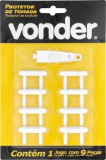 Marca: VonderConteúdo da embalagem: 1 Conjunto com 9 peças, sendo: 8 protetores e 1 chaveDestaques e diferenciais:Confeccionado em plástico ABS.Dicas de uso:Indicado para proteção de tomadas.Detalhes Técnicos:Cor: Branco Material: Plástico ABS Dimensões: Pino: Ø 4 mm x 17 mm / Protetor: 34 mm x 13 mm x 22 mm / Chave: 47 mm x 15 mm