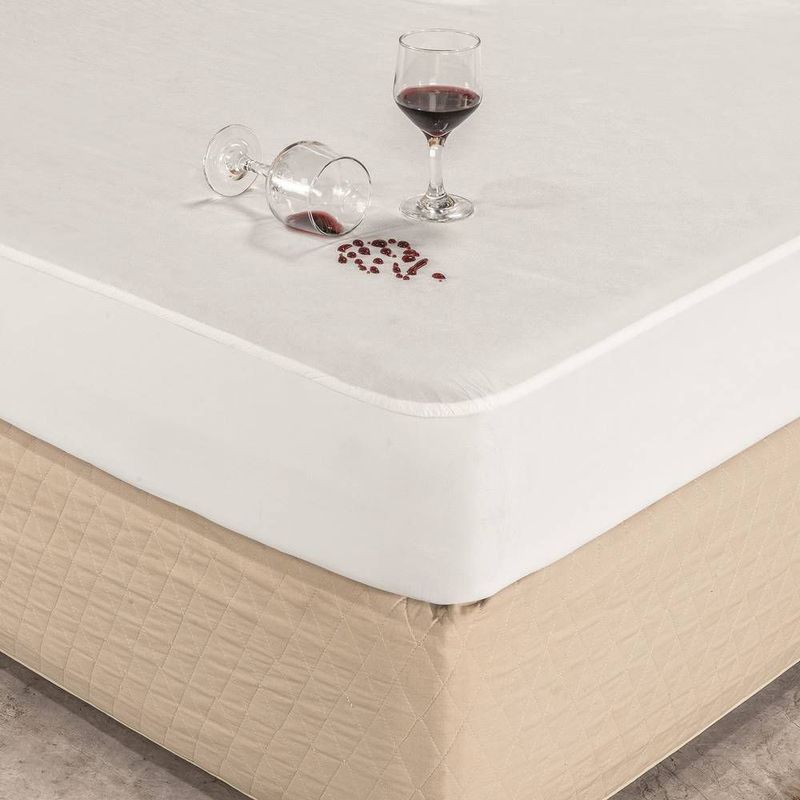 O Protetor de colchão impermeável é pratico e fácil de lavar e protege seu colchão contra possíveis manchas. Produto composto por: 01 Protetor 2,03m Comp. x 1,93m Larg. p/ Colchão até 40cm Alt. Composição: Superfície: 100% Polipropileno Base: 100% Polietileno Tecido Laterais: "Malha Gel" 100% Poliéster