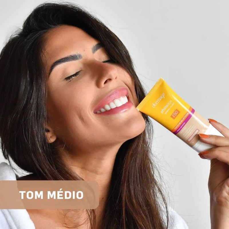 Protetor Solar Facial Dermage Photoage Mineral Fluido Médio Fps50 50ml O que é e para que serve O Protetor Solar Facial Dermage Photoage Mineral Fluido Médio Fps50 é um filtro solar 100% físico e mineral, desenvolvido com alta tecnologia para oferecer proteção completa contra os raios UVA, UVB, luz visível e luz azul, principais causadores de manchas, melasma e envelhecimento precoce. Com textura fluida e cobertura leve, o Photoage Mineral Fluido uniformiza o tom da pele, garantindo um acabamento natural e toque aveludado, sem pesar ou obstruir os poros. É o protetor ideal para gestantes, peles sensíveis, com rosácea ou propensas a irritações, pois não contém filtros químicos e é dermatologicamente testado. Benefícios FPS 50 e FPUVA 19 com proteção de amplo espectro; Escudo completo contra raios UVA, UVB, luz visível e luz azul; Textura fluida, leve e confortável para uso diário; Seguro para gestantes e peles sensíveis; Indicado para peles com melasma, acne e rosácea; Barreira de cor que uniformiza o tom da pele; Fórmula 100% mineral e vegana; Disponível nas tonalidades Clara e Média. O que é filtro físico (mineral)? O filtro solar físico, também chamado de protetor mineral, atua como uma barreira protetora sobre a pele, refletindo e dispersando a radiação solar antes que ela entre em contato com as camadas cutâneas. É o tipo de proteção mais seguro, hipoalergênico e estável, ideal para quem busca cuidado diário com suavidade e alta eficácia. Ativos na composição Vitamina E: antioxidante poderoso que combate os radicais livres, promove firmeza e luminosidade à pele. Bisabolol: ativo natural com propriedades calmantes e anti-inflamatórias, que ajuda a reduzir irritações, prevenir acne e aliviar vermelhidão. Quando e como usar Quando usar: O uso deve ser diário, inclusive em dias nublados ou em ambientes internos com luz artificial, pois a luz azul e a visível também causam danos à pele. Como usar:Aplique pela manhã sobre a pele limpa e seca.Use 1 colher de chá para cobrir rosto, pescoço e orelhas (quantidade recomendada pela Sociedade Brasileira de Dermatologia).Reaplique a cada 3 horas, ou a cada 2 horas em casos de exposição solar intensa, suor ou contato com água. Características 50g; FPS 50 | FPUVA 19; Filtro 100% físico (mineral); Sem filtros químicos, álcool, fragrância e parabenos; Dermatologicamente testado; Vegano e cruelty-free; Textura fluida com cobertura leve e natural.