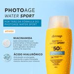 Protetor Solar Facial Dermage Photoage Water Sport Fps50 40ml O que é e para que serve O Protetor Solar Facial Dermage Photoage Water Sport FPS 50 é um protetor solar ultrafluido de alta performance, desenvolvido especialmente para quem busca proteção máxima contra os raios UVA e UVB, mesmo durante a prática de esportes ou exposição solar intensa. Com textura leve, toque seco e rápida absorção, sua fórmula resistente à água e ao suor oferece proteção contínua, mantendo a pele hidratada e confortável por mais tempo. Além disso, seus ativos antioxidantes ajudam a combater os radicais livres, prevenindo o envelhecimento precoce e mantendo a pele saudável e protegida. Ideal para todos os tipos de pele, inclusive as sensíveis, é indicado para adultos e crianças que desejam proteção e conforto em qualquer momento do dia. Benefícios Alta proteção FPS 50 com ampla cobertura UVA e UVB; Hidratação prolongada, mesmo em situações de suor intenso; Ação antioxidante, que protege contra radicais livres e envelhecimento precoce; Resistência à água e ao suor, ideal para esportes, praia e piscina; Textura ultraleve e refrescante, com toque seco e acabamento invisível; Seguro para adultos e crianças; Oftalmologicamente testado, não escorre e não irrita os olhos; Dermatologicamente testado, vegano e cruelty-free. Ativos na composição Niacinamida: poderoso antioxidante que protege a pele contra os efeitos da radiação solar e da poluição, além de fortalecer a barreira cutânea e prevenir manchas. Ácido Hialurônico: mantém a hidratação profunda da pele mesmo sob suor ou exposição solar prolongada, promovendo elasticidade e maciez. Como e quando usar Passo 1: Limpe o rosto com um sabonete facial adequado para o seu tipo de pele. Passo 2: Agite bem o produto antes de aplicar. Passo 3: Aplique o Photoage Water Sport FPS 50 uniformemente no rosto, pescoço e orelhas, massageando suavemente até completa absorção. Passo 4: Reaplique a cada 3 horas, ou a cada 2 horas em atividades ao ar livre e contato com água. Ideal para: Prática de esportes; Praia, piscina e caminhadas; Uso diário para proteção urbana e exposição solar prolongada. Características 40ml; FPS 50 – Alta proteção UVA/UVB; Livre de óleos, parabenos e fragrâncias; Dermatologicamente e oftalmologicamente testado; Vegano e cruelty-free; Toque seco, refrescante e invisível na pele.