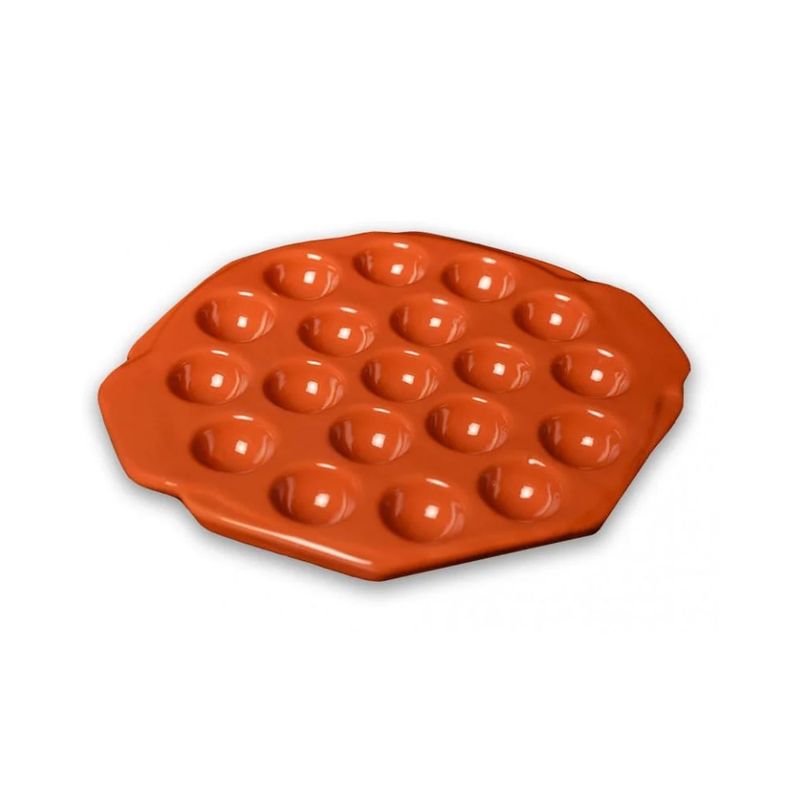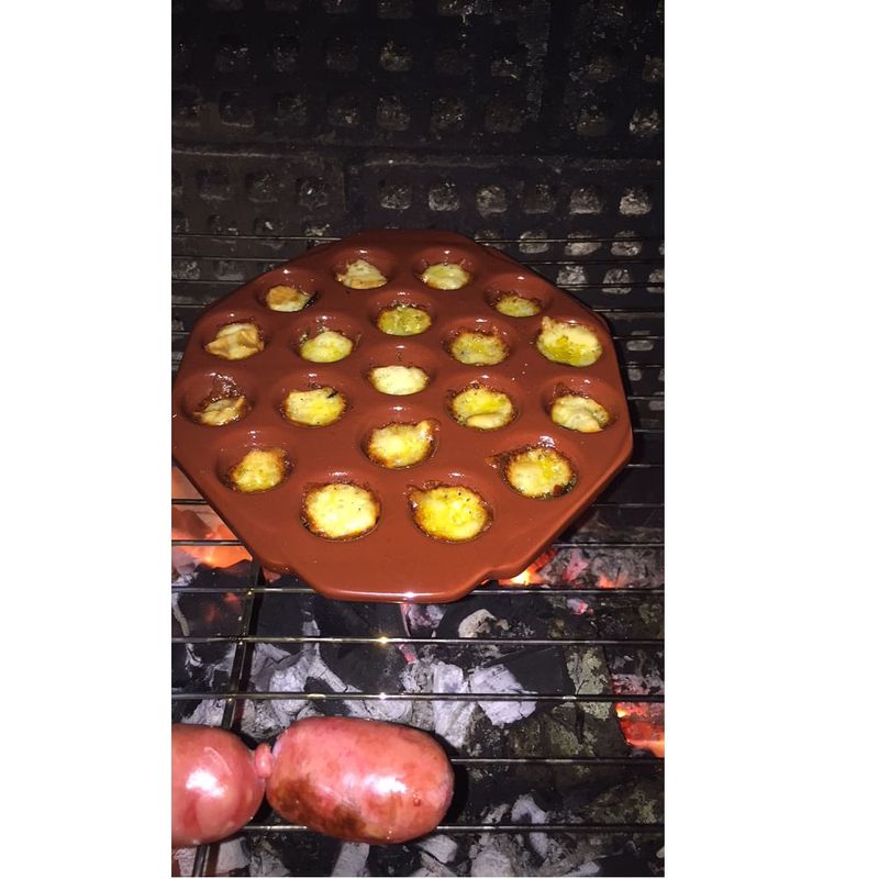 É feita de cerâmica refratária, onde você coloca pedacinhos de queijo provolone para derreter e ficar com um gosto diferenciado Ideal para aperitivos a provolonera, tem cavidades para receber o queijo antes de você levar a peça ao forno, churrasqueira ou micro-ondas. Seu uso é simples: basta cortar o queijo provolone em pequenos cubos e colocá-los nos moldes. Boa opção é ainda acrescentar especiarias e condimentos ao queijo, o que pode deixar o seu sabor mais especial. Siga as instruções para fazer o seu aperitivo dependendo do local que você vai utilizar a provolonera. Churrasqueira: não coloque a provolonera diretamente sobre o fogo. Sempre use uma grelha como apoio. Dependendo da intensidade da brasa, o queijo levará até 10 minutos para ficar pronto. Forno: O importante aqui é você ajuste a temperatura em 250C, sendo que ele deve ser pré-aquecido por 10 minutos antes de receber o aperitivo. Atenção pois no forno é muito rapido. Nesta situação o queijo fica pronto em apenas 3 minutos. Depois disso já está pronto para servir. Microondas: O ideal é usar potência máxima, o que derrete o queijo também rapidamente, você deverá aprender como funciona o seu forno. Feito isso, é só tirar a provolonera do fogo e levá-la para mesa com um descanso para prato ou algo do tipo como apoio. Como o acessório é de cerâmica, ele retém o calor e mantém o queijo derretido e soltinho por mais tempo.