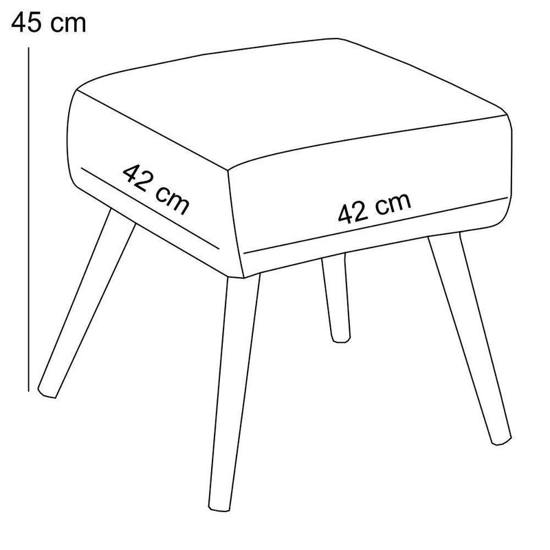 O Puff Banqueta Decorativa Com Pés Palito Lívia W01 Facto Verde Musgo - Lyam Decor é ideal para você que busca por elegância e praticidade em sua decoração! Seus pés delicados transmitem suavidade, harmonizando com o assento estofado, que por sua vez é revestido em Facto, tecido de excelente qualidade. Sua versatilidade permite inúmeras composições, seja para complementar a sala de estar, na divisão de ambientes integrados, também no quarto servindo de apoio ou combinado à poltronas, as possibilidades são infinitas, ele otimiza seu espaço e proporciona beleza na medida certa. Adquira já o seu! Dimensões do produto (L x A x P) 42 x 45 x 42 cm Características: Estrutura em madeira de reflorestamento de eucalipto ou pinus, compensado ou MDF. Revestimento em Facto Verde Musgo de alta qualidade, com acabamento semi brilho. Assento com espuma D-26. Pés Palito. Montagem prática, apenas rosquear os pés. - Por se tratar de estofado as medidas podem ter uma pequena variação de até 3 cm. - A tonalidade do produto real poderá ter ligeira variação devido o lote de tecidos. - A limpeza deve ser feita com pano levemente umedecido em água limpa, sem esfregar, não utilizar produtos abrasivos, desengordurantes, álcool ou solvente. Observações importantes: - Produto para uso residencial em ambiente interno, não devendo ficar exposto diretamente ao sol, calor e umidade excessivos. - Pode haver alguma diferença de tonalidade entre a imagem e o produto real, por conta do tratamento de imagens e a calibração de cores do seu monitor. - As imagens são meramente ilustrativas, não acompanham objetos de decoração e eletrônicos. - Ao receber a mercadoria, o cliente deve verificar as condições da embalagem, caso haja alguma avaria não assine o comprovante de recebimento e entre em contato com nossa loja para orientações. - Montagem, desmontagem e outras instalações serão de responsabilidade do cliente. Não nos responsabilizamos, no ato da entrega, por subir escadas/elevadores ou pelo transporte por guincho em apartamentos. Eventuais despesas são de responsabilidade do comprador. - Confira as dimensões do produto e certifique-se de que passará normalmente por supostos elevadores, portas, escadas e/ou corredores de sua residência.