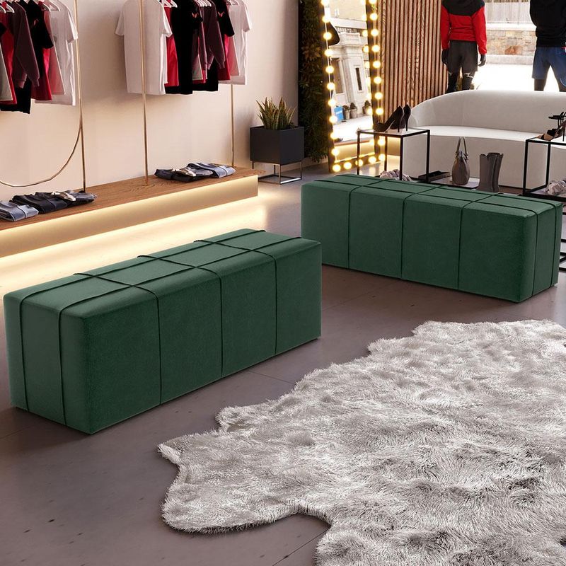 O Puff Recamier Roma, é uma peça versátil que combina estilo e conforto de maneira única. Com seu design contemporâneo, este Puff é mais do que apenas um assento, é um convite para relaxar, acrescentando personalidade e charme ao seu recinto. Vale ressaltar seus detalhes em costura rebatida que trazem o acabamento impecável, sendo assim uma peça de arte que eleva o charme do ambiente que estiver! Meticulosamente elaborado para se encaixar em diversos espaços de sua casa, sua estrutura durável oferece suporte confiável, enquanto seu estofamento traz toques de suavidade e requinte ao ambiente. Em resumo, é uma alegação de estilo deixando qualquer espaço mais convidativo, para relaxar em momentos de tranquilidade. Adquira já o seu! Dimensões do produto (L x A x P) 140 x 51 x 52 cm Características: Estrutura em Madeira Reflorestada. Revestimento em Couríssimo na cor Verde. Detalhes em Costura Rebatida, com ótimo acabamento. Estofado com Espuma D-23. Pés em Sapatas Plásticas. - Por se tratar de estofado as medidas podem ter uma pequena variação de até 3 cm. - A tonalidade do produto real poderá ter ligeira variação devido o lote de tecidos. Observações importantes: - Produto para uso residencial em ambiente interno, não devendo ficar exposto diretamente ao sol, calor e umidade excessivos. - Pode haver alguma diferença de tonalidade entre a imagem e o produto real, por conta do tratamento de imagens e a calibração de cores do seu monitor. - As imagens são meramente ilustrativas, não acompanham objetos de decoração e eletrônicos. - Ao receber a mercadoria, o cliente deve verificar as condições da embalagem, caso haja alguma avaria não assine o comprovante de recebimento. - Montagem, desmontagem e outras instalações serão de responsabilidade do cliente. Não nos responsabilizamos, no ato da entrega, por subir escadas/elevadores ou pelo transporte por guincho em apartamentos. Eventuais despesas são de responsabilidade do comprador. - Confira as dimensões do produto e certifique-se de que passará normalmente por supostos elevadores, portas, escadas e/ou corredores de sua residência.