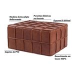 O Puff Mercury é a escolha perfeita para adicionar beleza e conforto ao seu ambiente. Fabricado em couro, combina um design rústico e sofisticado, conferindo uma estética única à decoração. Com atenção meticulosa aos detalhes, sua estrutura de alta qualidade garante durabilidade e resistência, tornando-o não apenas estilizado, mas também funcional. Destacando-se com um design diferenciado, este puff se torna o centro das atenções no seu espaço. Se busca algo verdadeiramente único, o Puff Mercury é a opção certa. Aproveite a oportunidade de transformar seu ambiente, adicionando beleza e conforto excepcionais com esta peça extraordinária. Leve para casa o toque de estilo e sofisticação que o Puff Mercury proporciona! Medidas do Produto: Largura: 80 cm; Altura: 40 cm; Profundidade: 80 cm; Largura Livre do Assento: 80x80 cm; Peso do Produto: 22 Kg; Detalhes do Produto: Material da Estrutura: Eucalipto Reflorestado Material do Estofado: Espuma D-26 REAL; Revestimento: Couro; Tipos de Pés: Fixo Material dos Pés: Sapata PVC Quantidade de Pés: 4 Peso Suportado: 100 Kg; Instruções/Cuidados: Utilizar um pano levemente umedecido com água, seguido de pano seco. Evitar exposição ao sol, para que o produto não sofra alterações na cor. Não limpar com escovas ou produtos abrasivos. Observações importantes: - As imagens são meramente ilustrativas e não acompanham objetos de decoração e eletros. - Pode haver alguma diferença de tonalidade entre a imagem e o produto, por conta do tratamento de imagens e a calibração de cores da sua tela. - Todos os nossos produtos são enviados devidamente embalados e com total segurança. - Ao receber o produto o cliente deve verificar as condições da embalagem, havendo alguma avaria não assine o comprovante de recebimento, entre em contato com a loja para orientações. - A nossa loja se responsabilizará pela entrega dos produtos adquiridos até a porta de entrada ou portaria do endereço indicado. - Não nos responsabilizamos, no ato da entrega, por montagens, desmontagens e instalações de produtos, bem como, por subir ou descer escadas/elevadores ou pela utilização de guinchos ou equipamentos similares para acesso a pisos superiores em apartamentos, casas ou escritórios. Estas despesas adicionais serão de responsabilidade do cliente. - Confira as dimensões do produto no momento da compra e certifique-se de que passará normalmente por elevadores, portas, escadas e/ou corredores, evitando assim futuros desagrados ou imprevistos com a entrega do produto.