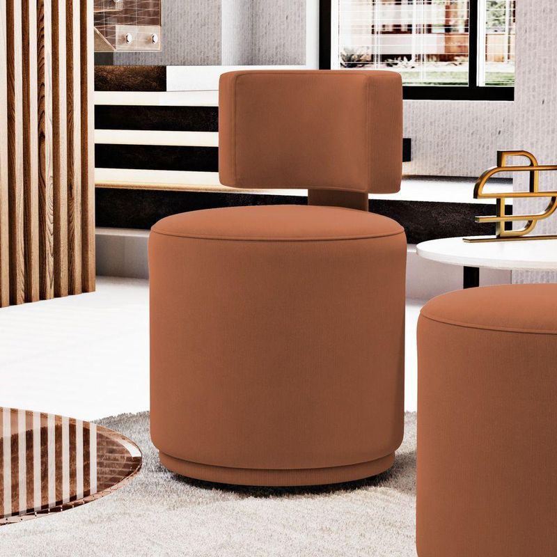 Puff Decorativo Orgânico Living Melis Minimalista Veludo Terracota - Desk DesignQue tal o Puff Decorativo Living Melis Orgânico?Buscando uma peça versátil e moderna para completar sua decoração? O Puff Decorativo Living Melis é a escolha perfeita! Com um design orgânico e minimalista, ele se adapta com elegância a diversos ambientes, como sala de estar, living e até espaços corporativos. Sua estrutura é fabricada em Madeira de Eucalipto, garantindo durabilidade e resistência. A espuma de densidade D-24 oferece um conforto incomparável, enquanto seu encosto curvo e base revestida proporcionam um toque sofisticado. Os pés de plástico garantem estabilidade sem comprometer o visual moderno.Com formato cilíndrico e compacto, este puff decorativo é perfeito para quem deseja otimizar espaços sem abrir mão do estilo. Além disso, o Puff Living Melis está alinhado às principais tendências de decoração, como a decoração orgânica, que valoriza formas naturais e o uso consciente de materiais.Ideal para momentos de descontração ou para complementar a estética do ambiente, o Puff Melis vai transformar sua casa em um espaço ainda mais acolhedor e cheio de personalidade.Adquira agora e eleve o estilo da sua decoração com um toque contemporâneo e funcional!Dimensões do Puff:Largura: 46 cmAltura Total: 70 cmProfundidade: 48 cmAltura até o Assento: 46 cmAltura do Encosto: 22 cmLargura do Encosto: 35 cmAltura dos Pés: 2 cmPeso Aproximado: 10 kgATENÇÃO:** PODE HAVER UMA PEQUENA VARIAÇÃO DE COR ENTRE O PRODUTO REAL E A IMAGEM ANUNCIADA DEVIDO AO LOTE DE TECIDOS.** POR SE TRATAR DE UM ESTOFADO ARTESANAL, AS MEDIDAS PODEM APRESENTAR UMA LIGEIRA VARIAÇÃO DE ATÉ 3 CM.Características:Material da Estrutura: Madeira de EucaliptoMaterial do Estofamento: Espuma D-24Revestimento: VeludoPossui Pés: SimTipo de Pés: SapatasMaterial dos Pés: PlásticoQuantidades de Lugares: 1Peso Suportado: 100 kg sem ImpactoAmbiente Principal: Sala de Estar, Recepção, Living, Salão de Beleza, Quarto, Salão de FestaTipo de Produto: Puff Minimalista, Puff Redondo, Banco Estofado, Puff Eco-friendlyPossui Manual de Montagem: NãoDiferenciais:- Espuma D-24- Compacto- Design Orgânico- Matéria Prima de ReflorestamentoItens Inclusos:- 01 Puff.Montagem:- Complexidade da Montagem: Baixa.- Recomendamos que seja feita por um profissional qualificado.- Produto enviado montado.Garantia de Fábrica:90 dias contra defeito de fabricação.Limpeza e cuidados: Utilizar pano levemente umedecido com água, seguido de pano seco. Não utilizar produtos químicos ou abrasivos na limpeza. Evitar contato com objetos cortantes. Manter ao abrigo de local interno, sem ficar exposto diretamente ao sol, calor e umidade excessivo.Importante:- Pode haver ligeira diferença de tonalidade entre a imagem digital e o produto real por conta do tratamento de imagens e a calibração de cores do seu monitor.- As imagens são meramente ilustrativas, não acompanham objetos de decoração e eletrônicos.- Produto para uso residencial em ambiente interno, não devendo ficar exposto diretamente ao sol, calor e umidades excessivas.- Ao receber a mercadoria verifique a condição da embalagem, caso apresente violação ou esteja danificada não assine o comprovante de entrega.- Montagem, desmontagem e outras instalações é de inteira responsabilidade do cliente.- Caso resida em apartamento ou condomínio é indispensável que confira as dimensões do produto e certifique-se de que passará normalmente por elevadores, portas, escadas e/ou corredores de sua residência. Não nos responsabilizamos no ato da entrega, por subir escadas/elevadores ou pelo transporte por guincho em apartamentos. Eventuais despesas são de responsabilidade do comprador.