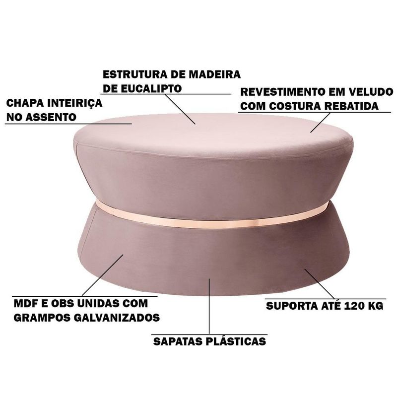 Descrição do Produto: Puff Decorativo Sala de Estar 95cm Dhaka Veludo Rosê - Gran Belo projetado com Perfeição a cada detalhe que se vê, oferecendo estrutura de Alta Qualidade e um Design diferenciado que irá se destacar no seu ambiente trazendo algo Único para você. Sinta a emoção de deixar o seu precioso espaço Lindo e bem decorado, leve e garanta já o seu! Dimensões do Puff: Largura: 95cm; Altura: 43cm; Profundidade: 95cm; Altura do Assento ao Chão: 43cm; Largura do Assento: 95cm; Diâmetro: 95cm; Peso: 15kg; Características do Produto: Material da Estrutura: Madeira reflorestada de eucalipto, partes em MDF e OSB; Assento: Fixo em espuma D-28; Material dos Pés: Sapatas Plásticas; Quantidade de Pés: 04 Pés; Tipo de Pés: Fixo; Revestimento: Veludo 100% Importado; Peso Suportado: 100Kg; Conteúdo da Embalagem: 1 Puff; Necessita de Montagem: Não; Instruções/Cuidado: Indicado para uso residencial, sua limpeza deve ser feita com pano úmido com água limpa, sem esfregar. Pode passar álcool líquido de uso doméstico na limpeza. Nunca sentar nos braços ou encosto do produto. Observações importantes: - As imagens são meramente ilustrativas e não acompanham objetos de decoração e eletros. - Pode haver alguma diferença de tonalidade entre a imagem e o produto, por conta do tratamento de imagens e a calibração de cores da sua tela. - Todos os nossos produtos são enviados devidamente embalados e com total segurança. - Ao receber o produto o cliente deve verificar as condições da embalagem, havendo alguma avaria não assine o comprovante de recebimento, entre em contato com a loja para orientações. - A nossa loja se responsabilizará pela entrega dos produtos adquiridos até a porta de entrada ou portaria do endereço indicado. - Não nos responsabilizamos, no ato da entrega, por montagens, desmontagens e instalações de produtos, bem como, por subir ou descer escadas/elevadores ou pela utilização de guinchos ou equipamentos similares para acesso a pisos superiores em apartamentos, casas ou escritórios. Estas despesas adicionais serão de responsabilidade do cliente. - Confira as dimensões do produto no momento da compra e certifique-se de que passará normalmente por elevadores, portas, escadas e/ou corredores, evitando assim futuros desagrados ou imprevistos com a entrega do produto.