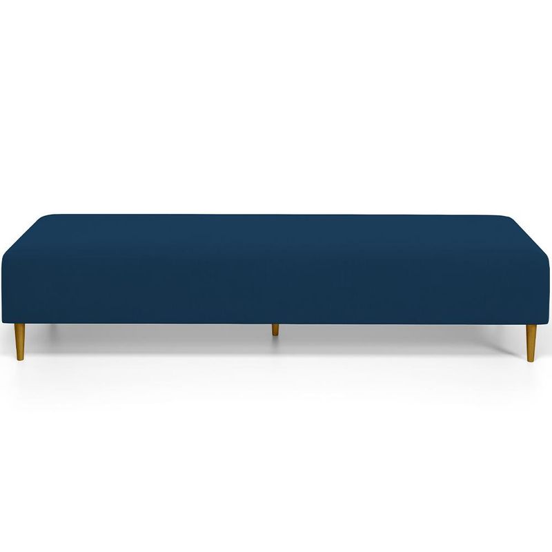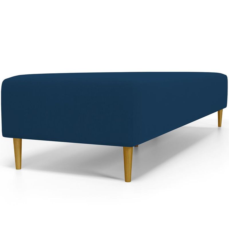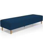 Pensando na praticidade do dia-dia, o Puff Decorativo Bali W01 Pés Palito 190x60cm da Lyam Decor é perfeito para a sua decoração!! É extremamente confortável, ideal para quem procura por funcionalidade e beleza embutidos num único produto. Estruturado com espuma macia e de alta densidade e revestimento de excelente qualidade, além de seus belos pés palito que arrematam muito bem toda a composição deixando-o ainda mais elegante. Possuindo diferentes funções, pode ser posto em salas de estar, garantindo assentos extras, no quarto, como um apoio ou até mesmo recamier aos pés da cama, em closets, integrando ambientes, dentre outras opções. Com certeza vai harmonizar e embelezar ainda mais a decoração do seu lar. Garanta já o seu!!! Dimensões do produto (L x A x P) 190 x 45 x 60 cm Características: Estrutura em pinus e eucalipto de reflorestamento, com imunização contra mofo, cupim e micro-organismos. Revestimento em Suede na cor Azul Marinho. Espuma de poliuretano D-26. Pés Palito com montagem prática, necessita apenas rosquear na base. Peso suportado: Até 120 kg. Sustentação do assento com percíntas elásticas de 50mm. Altura dos pés: 15 cm. - Por se tratar de estofado as medidas podem ter uma pequena variação de até 3 cm. - A tonalidade do produto real poderá ter ligeira variação devido o lote de tecidos. Observações importantes: - Produto para uso residencial em ambiente interno, não devendo ficar exposto diretamente ao sol, calor e umidade excessivos. - Pode haver alguma diferença de tonalidade entre a imagem e o produto real, por conta do tratamento de imagens e a calibração de cores do seu monitor. - As imagens são meramente ilustrativas, não acompanham objetos de decoração e eletrônicos. - Ao receber a mercadoria, o cliente deve verificar as condições da embalagem, caso haja alguma avaria não assine o comprovante de recebimento. - Montagem, desmontagem e outras instalações serão de responsabilidade do cliente. Não nos responsabilizamos, no ato da entrega, por subir escadas/elevadores ou pelo transporte por guincho em apartamentos. Eventuais despesas são de responsabilidade do comprador. - Confira as dimensões do produto e certifique-se de que passará normalmente por supostos elevadores, portas, escadas e/ou corredores de sua residência.