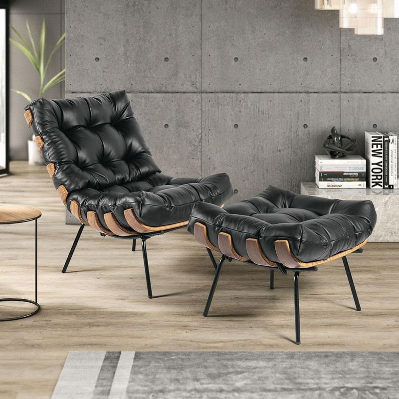 Descrição do Produto: Puff Decorativo Sala de Estar Costela Couro Preto - Gran Belo é um produto moderno, mas que não perde sua sofisticação. Com seu revestimento totalmente em couro e seu estofamento em fibra siliconizada, é ideal para quem quer decorar com um produto de altíssima qualidade e que vai dar um toque super diferente e atual para o ambiente. Não perca essa oportunidade! Dimensões da Puff: Largura: 63 cm; Altura: 45 cm; Profundidade: 55 cm; Altura do Assento ao Chão: 22 cm; Largura do Assento: 63 cm; Peso: 8 kg; Características do Produto: Material da Estrutura: Madeira Tauari com base em ferro com pintura eletrostática; Assento: Almofada em fibra siliconizada; Base: Fixa; Revestimento: Couro legítimo; Peso Suportado: 120Kg; Conteúdo da Embalagem: 1 Puff; Necessita de Montagem: Sim; Instruções/Cuidado: Indicado para uso residencial/comercial, sua limpeza deve ser feita com pano úmido com água limpa, sem esfregar. Pode passar álcool líquido de uso doméstico na limpeza. Nunca sentar no encosto ou braços do produto. Observações importantes: - As imagens são meramente ilustrativas e não acompanham objetos de decoração e eletros. - Pode haver alguma diferença de tonalidade entre a imagem e o produto, por conta do tratamento de imagens e a calibração de cores da sua tela. - Todos os nossos produtos são enviados devidamente embalados e com total segurança. - Ao receber o produto o cliente deve verificar as condições da embalagem, havendo alguma avaria não assine o comprovante de recebimento, entre em contato com a loja para orientações. - A nossa loja se responsabilizará pela entrega dos produtos adquiridos até a porta de entrada ou portaria do endereço indicado. - Não nos responsabilizamos, no ato da entrega, por montagens, desmontagens e instalações de produtos, bem como, por subir ou descer escadas/elevadores ou pela utilização de guinchos ou equipamentos similares para acesso a pisos superiores em apartamentos, casas ou escritórios. Estas despesas adicionais serão de responsabilidade do cliente. - Confira as dimensões do produto no momento da compra e certifique-se de que passará normalmente por elevadores, portas, escadas e/ou corredores, evitando assim futuros desagrados ou imprevistos com a entrega do produto.