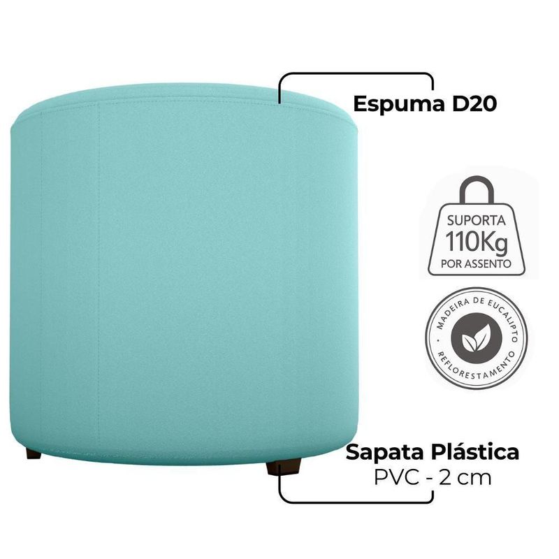 Puff Redondo Copenhage 43cm Veludo Deluxe Verde Milani Store VerdePuff Redondo Copenhage, muito conforto e estilo compacto! Estrutura em Madeira de Eucalipto (de reflorestamento) e MDF, estofado com espuma D20 e revestido em Veludo. O design redondo é valorizado pelo detalhe de costura vertical nas laterais, além das sapatas plásticas (PVC), suporta até 110 kg. Este produto será entregue em 01 volume.DimensõesAltura: 45 cmLargura: 43 cmProfundidade: 43 cmEspecificações TécnicasModelo: CopenhageMateriais: Madeira (Eucaplipto) + MDF, Espuma e Tecido.Estilo: ModernoAmbiente: Salas.Sistema de montagemParafusos e Manual de montagem incluso.Montagem, desmontagem e outras instalações serão de responsabilidade do cliente!Recomendação de LimpezaPara a limpeza, utilize um pano seco para retirada do pó.Evite o uso de produtos abrasivos e o contato direto com a umidade.Copenhage: o toque de elegância que transforma seu ambiente!Importante SaberAs imagens são meramente ilustrativas, não acompanham objetos de decoração e eletrônicos.A tonalidade da cor do produto pode variar de acordo a calibração de cores do seu monitor, a iluminação do ambiente ou sua percepção visual.O cliente deve verificar a quantidade de VOLUMES descritos na nota, a situação da embalagem, caso haja algum dano NÃO ASSINE o comprovante de recebimento e RECUSE a mercadoria.Não nos responsabilizamos por subir escadas/elevadores ou pelo transporte por guincho em apartamentos. Eventuais despesas são de responsabilidade do comprador.Confira as dimensões do produto e certifique-se de que passarão normalmente por supostos elevadores, portas, escadas ou corredores de sua residência. Recomendamos que o responsável pelo recebimento confira se os produtos entregues correspondem ao modelo e à quantidade adquirida.Garantia De Fábrica90 dias para eventuais defeitos de fabricação.Marca: Matrix | Forma: Redondo | Produto: Puff | Cor: Verde | Tonalidade: Multicolorido Cor: Verde
