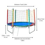 Pula Pula Piscina De Bolinhas Escorregador Medio E GangorrasCom 20 anos de experiência, a Rotoplay Brinquedos leva alegria para as crianças com produtos de qualidade e segurança. Somos uma fábrica especializada em cama elástica e piscina de bolinhas — diversão garantida, direto da nossa fábrica para a sua casa!Cama Elástica 3,05mMedidas (Valores Aproximados):Diâmetro total: 3,05mAltura total: 1,90mAltura do chão a lona: 60cmEspecificações:Estrutura em aço galvanizado;Acessórios com proteção UV;Sistema de impulsão por 64 molas;4 pés em formato de U;Rede de proteção em polipropileno multicolorida;Sistema de montagem do trampolim por encaixe;Suporta até 150 kg;Lona de salto; (A cor varia de acordo com a disponibilidade do estoque, não é possível escolher a cor da lona);Protetor de MolasEscada.Cama Elástica 2,30mMedidas (Valores Aproximados):Diâmetro total: 2,30mDiâmetro lona de salto (gancho a gancho): 1,86mAltura total: 1,77mAltura do chão a lona: 57cmEspecificações:Estrutura em aço galvanizado;Acessórios com proteção UV;Sistema de impulsão por 42 molas;3 pés em formato de U;Rede de proteção em polipropileno multicolorida;Sistema de montagem do trampolim por encaixe;Suporta até 90 kg;Lona de salto no Material QR Nacional com proteção UV; (A cor varia de acordo com a disponibilidade do estoque, não é possível escolher a cor da lona);Protetor de Molas;Escada.Piscina De Bolinhas Quadrada 1,50m X 1,50mMedidas (Valores Aproximados):Largura: 1,50mAltura total: 1,70mAltura da tábua lateral: 30cmEspecificações:Estrutura em aço galvanizado;Acessórios com proteção UV;Rede de proteção em polipropileno multicolorida;Sistema de montagem por encaixe;Revestida com isotubos blindados.1000 Bolinhas:Produzidas com materiais de alta resistência e qualidade (proporcionam uma brincadeira alegre e sem riscos);Atóxico (não prejudicam a saúde da criança e proporcionam maior higiene);Sistema anti quebra (você não perde bolinhas quebradas, e não machuca as crianças);Com sistema emborrachado (a bolinha não amassa, você aperta e ela volta na hora);As bolinhas são enviadas em cores sortidas e aleatórias, de acordo com a disponibilidade do estoque.Escorregador Médio:Com escada de 03 (três) degraus.Prancha tipo tobogã em cores vibrantes e diversificadas;Bordas salientes para maior segurança das crianças;Pigmento que não desbota com sol e chuva, garantindo a resistência e durabilidade do produto;Material: Polietileno, atóxico, aditivado com anti UV;Medidas: (C) 1,55m x (L) 62cm x (A) 98cm;Processo de fabricação: Rotomoldagem;Peso: 08 kg;Peso suportado: 30kg;As cores são enviadas de acordo com a disponibilidade de estoque.Gangorra 1 LugarÉ confeccionada em material de alta qualidade com pigmento que não desbota com chuva e sol, garantindo a resistência e durabilidade do produto;Cores sortidas predominante nas cores primárias;Peso: 2,3Kg;Comprimento: 84 cm;Largura: 27 cm;Altura: 42 cm;Apoio para os Pés: Sim;Composição da Estrutura: Plástico;Processo de fabricação: Roto moldagem;Idade Recomendada: 1 a 4 anos;Suporta quantas crianças: 01.A cor e modelo é enviada de acordo com a disponibilidade de estoque.Gangorra 2 LugaresÉ confeccionada em material de alta qualidade com pigmento que não desbota com chuva e sol, garantindo a resistência e durabilidade do produto;Cores sortidas predominante nas cores primárias;Peso: 3Kg;Comprimento: 1,03 cm;Largura: 0,38 cm;Altura: 0,43 cm;Apoio para os Pés: Sim;Composição da Estrutura: Plástico;Processo de fabricação: Roto moldagem;Idade Recomendada: 1 a 4 anos;Suporta quantas crianças: 02.A cor é enviada de acordo com a disponibilidade de estoque.O protetor de molas é apenas para proteger contra quedas, evite pisar no acessório, pois isto pode danificá-lo.Atenção: A montagem do produto deve ser de acordo com as instruções do fabricante, a montagem sem seguir estas instruções, pode danificar o produto!Garantia de fábrica: 90 dias!Imagem meramente ilustrativa, a cor varia de acordo com disponibilidade em estoque.