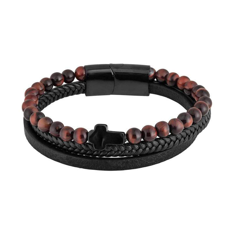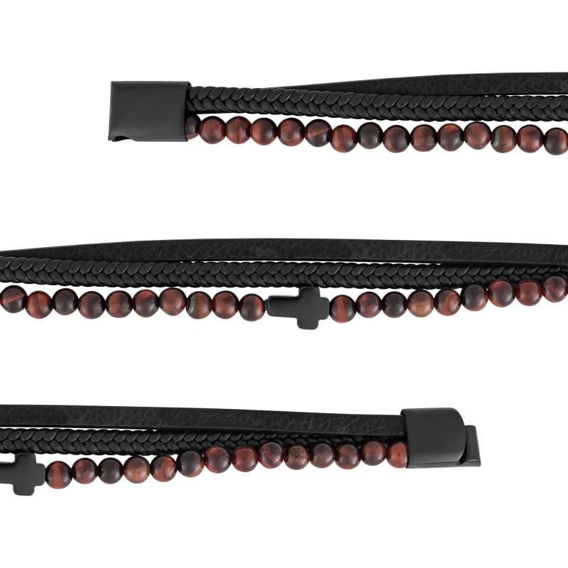 Pulseira de Aço Eclipse Couro e Pedras Olho de Tigre Estilosa é perfeita para completar o seu visual. Descrição: Material: Aço 316L IPB , Couro Ecológico e Pedras Naturais Olho de TigreCor: Preto e Marrom com uma Cruz no aço NegroComprimento : 20cm com extensor de 1,5cm Largura:12mm Tamanho da pedra: 6mm Olho de Tigre IPB - Tecnologia que insere a cor Negra no Aço. O aço 316L está quatro níveis acima do aço cirúrgico. Este aço possui a qualidade máxima para produção de joias, pois é hipoalergênico, não oxida e não descasca. Essa peça acompanha:* Certificado de Garantia* Nota Fiscal