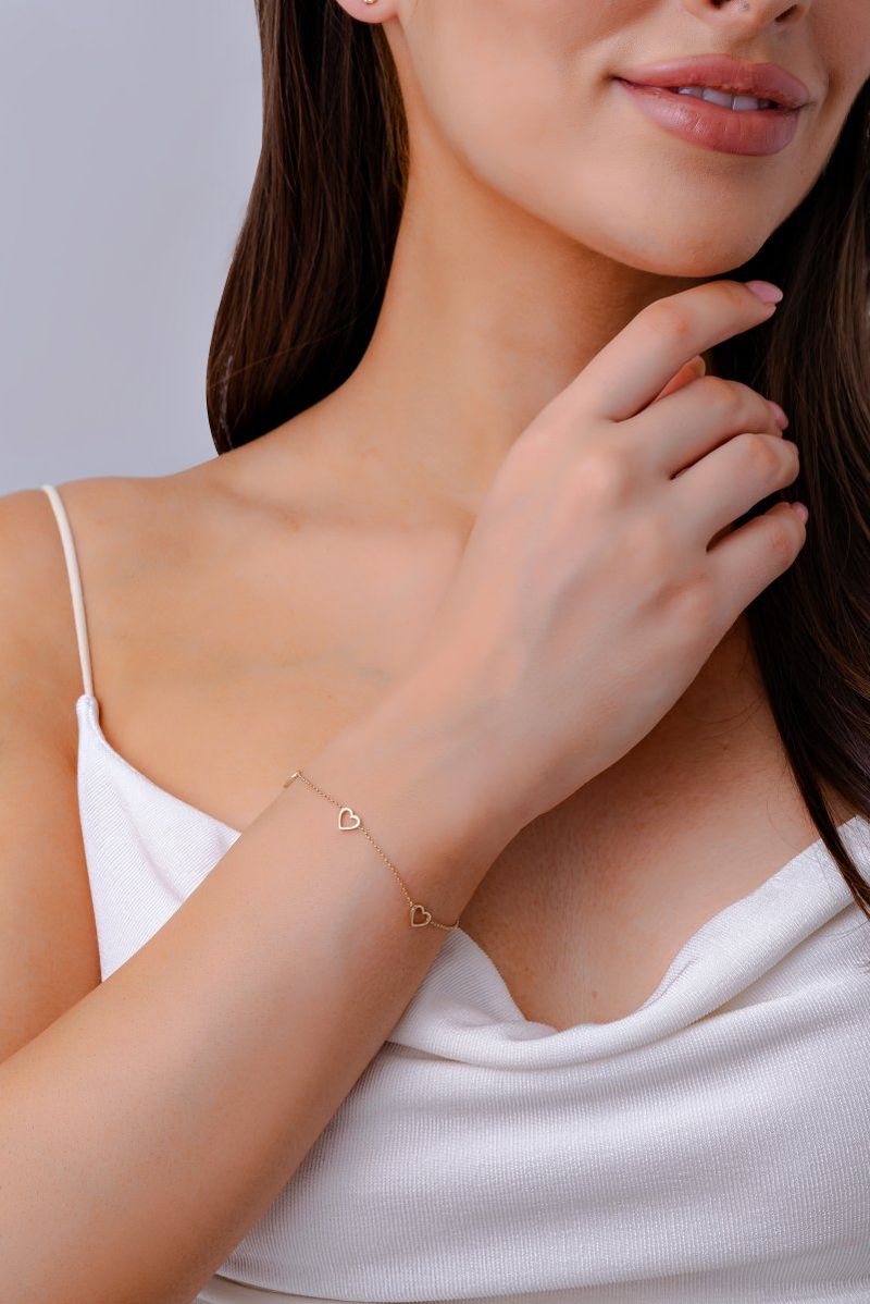 A pulseira é fabricado em ouro 10k. Um peça delicada e atemporal, com corações delicados em sua composição. Compre online sua Pulseira de Ouro 10k Coração Acompanha embalagem para presente e certificado de garantia. Atendemos todo o Brasil. Joia em Ouro 10K Pulseira de ouro amarelo Tamanho aproximado: 18 cm Todas as Joias Safira acompanham embalagem para presente, certificado de garantia e nota fiscal. Veja mais Pulseiras de Ouro.