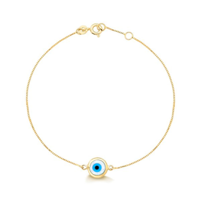 A pulseira é fabricado em ouro. Uma joia delicada e atemporal e cheia de significado, com traços delicados trazendo mais leveza a peça. Compre online sua Pulseira de Ouro Olho Grego. Acompanha embalagem para presente e certificado de garantia. Enviamos para todo o Brasil. Joia em Ouro Amarelo 10k Pulseira de Ouro Tamanho aproximado: 18 cm Todas as Joias Safira acompanham embalagem para presente, certificado de garantia e nota fiscal. Veja mais Pulseiras de Ouro.