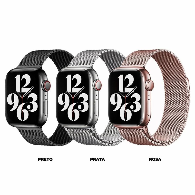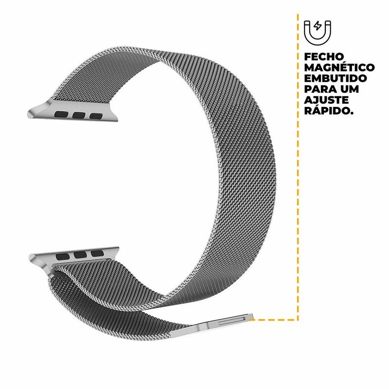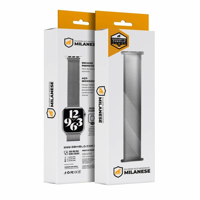 Pulseira Milanese Gshield para Apple Watch | Modernidade, Conforto e Estilo Deixe o seu Apple Watch ainda mais elegante com a Pulseira Milanese da Gshield, feita para quem busca um acessório moderno, confortável e sofisticado. Produzida em aço inoxidável de alta qualidade, ela envolve o pulso de forma suave e flexível, garantindo ajuste perfeito e conforto durante todo o dia. O fecho magnético proporciona praticidade extra: basta aproximar e a pulseira se ajusta automaticamente ao seu pulso, permitindo regulagem fácil e segura sem complicações. Especificações Técnicas Marca: Gshield Regulagem: Fecho magnético Material: Aço inoxidável Compatibilidade: Apple Watch (modelos selecionados) Observação: Não acompanha o relógio (imagens meramente ilustrativas)