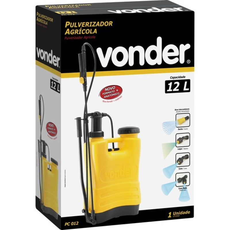 Conteúdo da embalagem1 Pulverizador. Acompanha 4 tipos diferentes de bicos: leque, cone, cone duplo e ducha, além de um jogo de acessórios para montagem e manutenção. O jogo de acessórios vai acondicionado dentro do pulverizador.Aplicações e dicas de usoIndicado para pulverizações em geral. Não utilizar produtos químicos como solventes, ácidos ou tintas.Destaques e diferenciaisPermite a reversão da alavanca, facilitando o trabalho para destros e canhotos. Possui trava no gatilho que proporciona menor fadiga, além de alça para transporte com ajuste e travamento e destravamento rápido. Por ser fabricado em plástico, torna-se extremamente leve. Possui ainda formato anatômico para melhor acomodação nas costas do operador. Atende as exigências da norma ABNT NBR ISO 19932-1 e 2 DETALHES TÉCNICOS Tipo do pulverizador: Costal agrícola Capacidade do reservatório do pulverizador: 12 L Sistema de acionamento do pulverizador: Alavanca Sistema de compressão do pulverizador: Compressão prévia