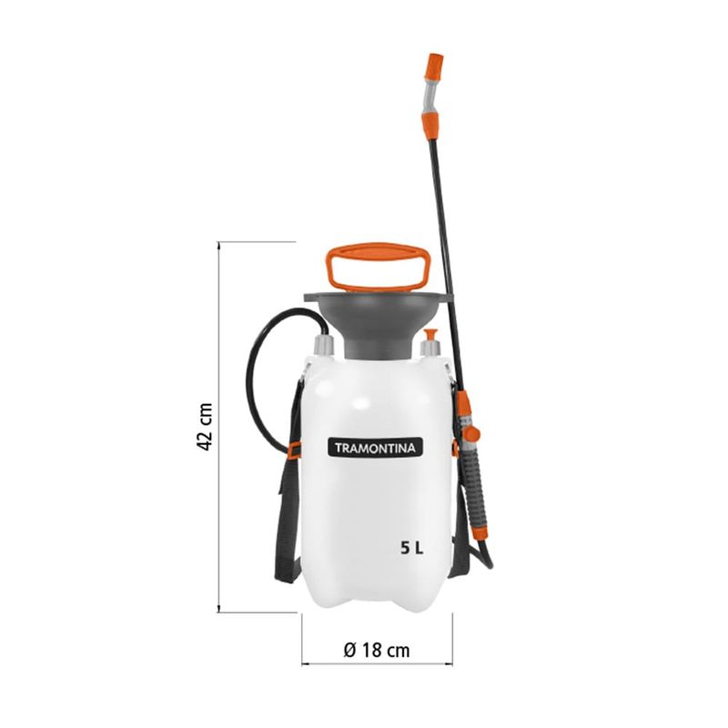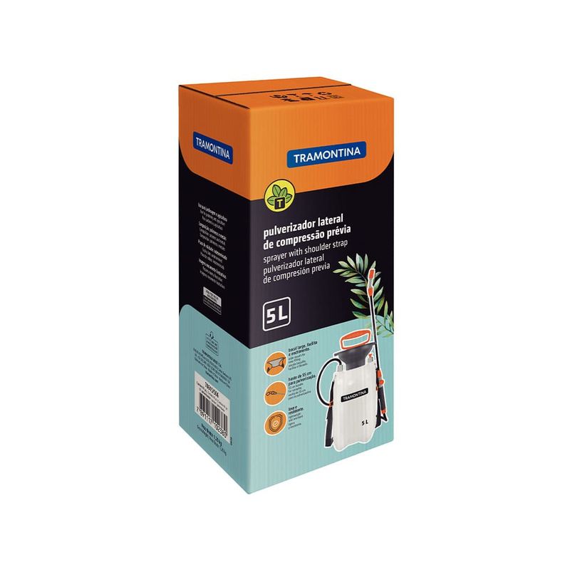 Pulverização potente e segura para grandes áreasO Pulverizador Lateral de Compressão Prévia Tramontina é ideal para quem precisa cuidar de jardins ou hortas maiores com praticidade e eficiência. Com capacidade para 5 litros, ele permite a aplicação contínua de água ou soluções naturais, como fertilizantes e repelentes, mantendo as plantas saudáveis e protegidas contra pragas. O equipamento conta com uma haste de bombeamento com trava de segurança, evitando acionamentos acidentais, além de um registro com controle de vazão e gatilho com trava, que proporcionam mais conforto durante o uso prolongado.Design funcional e alta resistênciaDesenvolvido para oferecer resistência e durabilidade, o pulverizador possui corpo em plástico de alta resistência, com indicador de capacidade e instruções de uso impressas no próprio tanque. Seu bico com jato regulável e a haste de pulverização em fibra de vidro – leve, resistente e à prova de oxidação – garantem maior versatilidade. O bocal largo facilita o enchimento, enquanto a válvula de segurança regula a pressão interna com eficiência. Com cinto de sustentação ajustável e manutenção simples, é uma ferramenta robusta e prática para quem leva a jardinagem a sério.