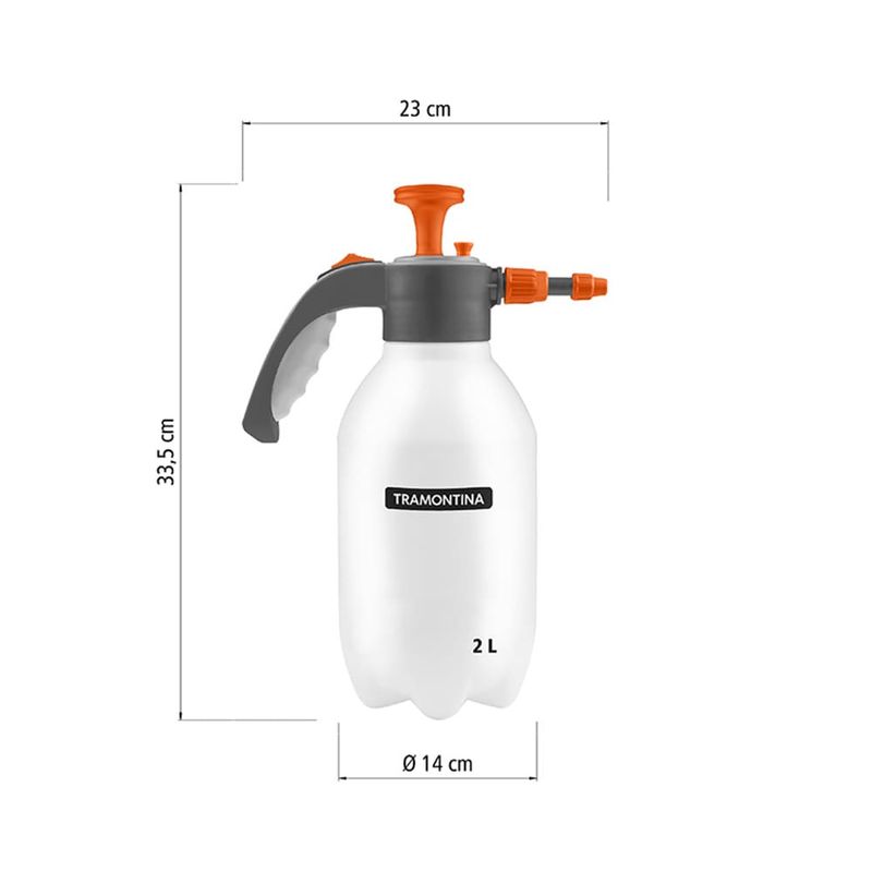Eficiência e conforto no cuidado com as plantasO Pulverizador Plástico Manual de Compressão Prévia Tramontina – 2 Litros é a ferramenta ideal para quem busca praticidade e desempenho no cuidado com o jardim ou horta. Com capacidade para 2 litros, ele permite a aplicação de água e soluções naturais, como adubos orgânicos, de forma uniforme e eficaz. Graças ao seu sistema de compressão prévia e à trava no gatilho de acionamento, o uso se torna mais confortável, permitindo pulverização contínua sem esforço. Ideal para manter as plantas saudáveis, hidratadas e protegidas contra pragas e fungos.Resistência, versatilidade e segurançaProduzido com plástico de alta resistência, o pulverizador conta com bico regulável, que permite ajustar o tipo de jato conforme a necessidade da aplicação. Seu corpo ergonômico possui indicador de capacidade e instruções de uso impressas, facilitando o manuseio mesmo para iniciantes. A válvula de segurança garante o alívio da pressão interna, tornando o uso ainda mais seguro. Leve, versátil e durável, esse pulverizador é perfeito para tornar o cuidado com o verde mais simples e eficiente no dia a dia.