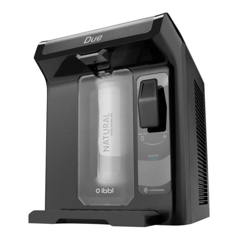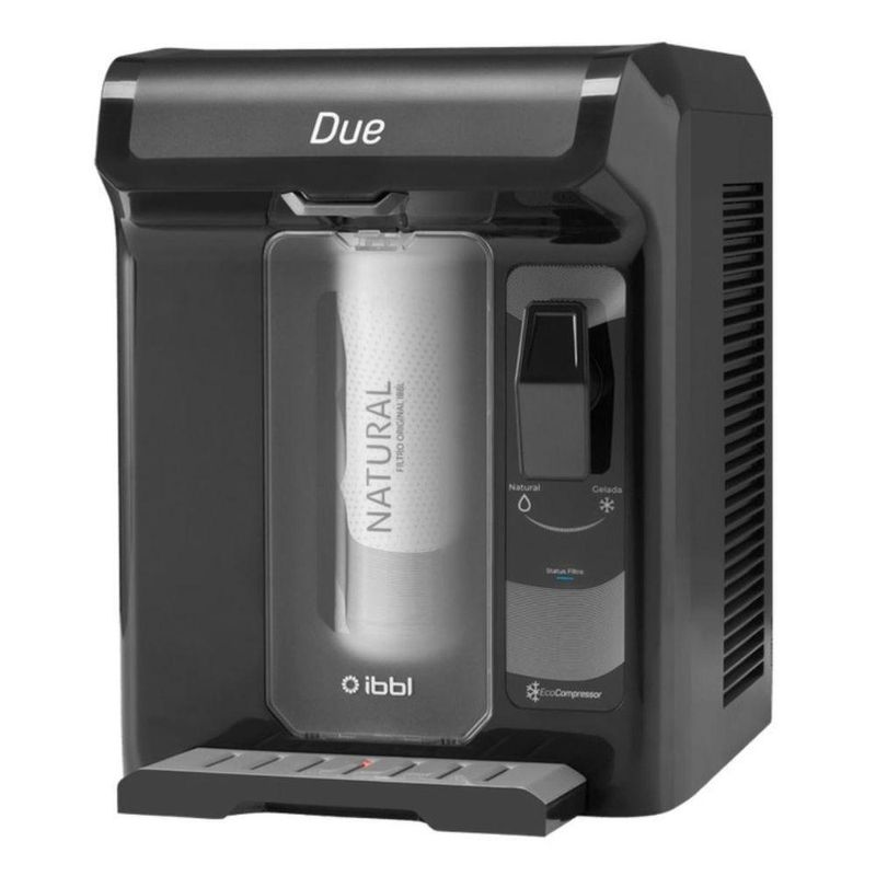 Purificador água Ibbl Due Cinza 110v A10061001Purificador de Água Due Grafite - IBBL A10061001: Dê um toque de sofisticação e saúde à sua casaBeba água fresca e pura a qualquer momento com o Purificador de Água Due Grafite da IBBL. Este modelo elegante e moderno combina design sofisticado com alta performance, oferecendo água natural e gelada para toda a família.Desfrute de diversos benefícios:Água pura e saudável: O filtro C+3 elimina impurezas, cloro, odores e sabores indesejáveis, além de controlar a proliferação de bactérias, garantindo água pura e saudável para você e sua família.Refil de fácil troca: A troca do refil é simples e prática, sem necessidade de ferramentas ou ajuda profissional.Design compacto e moderno: O design slim e a cor grafite combinam com qualquer ambiente, da cozinha à sala de estar.Economia de energia: O compressor ecológico gela a água de forma eficiente, economizando energia e ajudando o meio ambiente.Praticidade e funcionalidade: A alavanca de acionamento permite escolher a temperatura da água (natural ou gelada) com apenas um toque.Ideal para famílias: Com capacidade para até 7 pessoas, o Purificador Due é perfeito para famílias de todos os tamanhos.Especificações:Marca: IBBLModelo: Due GrafiteCor: CinzaTemperatura da água: Natural e geladaTipo: ResidencialCapacidade interna de água: 1,3LCapacidade de água gelada: 940ml por horaVazão máxima: 60 litros por horaConsumo (Kwh/mês): 8,2Amperagem: 1,2/0,6Potência: 90WFrequência: 60HzDimensões (sem embalagem): 361 x 270 x 355mmPeso: 8,00kgCaracterísticas - Marca: IBBLModelo: Due GrafiteCor: CinzaTemperatura da água: Natural e geladaTipo: ResidencialCapacidade interna de água: 1,3LCapacidade de água gelada: 940ml por horaVazão máxima: 60 litros por horaConsumo (Kwh/mês): 8,2Amperagem: 1,2/0,6Potência: 90WFrequência: 60HzDimensões (sem embalagem): 361 x 270 x 355mmPeso: 8,00kg
