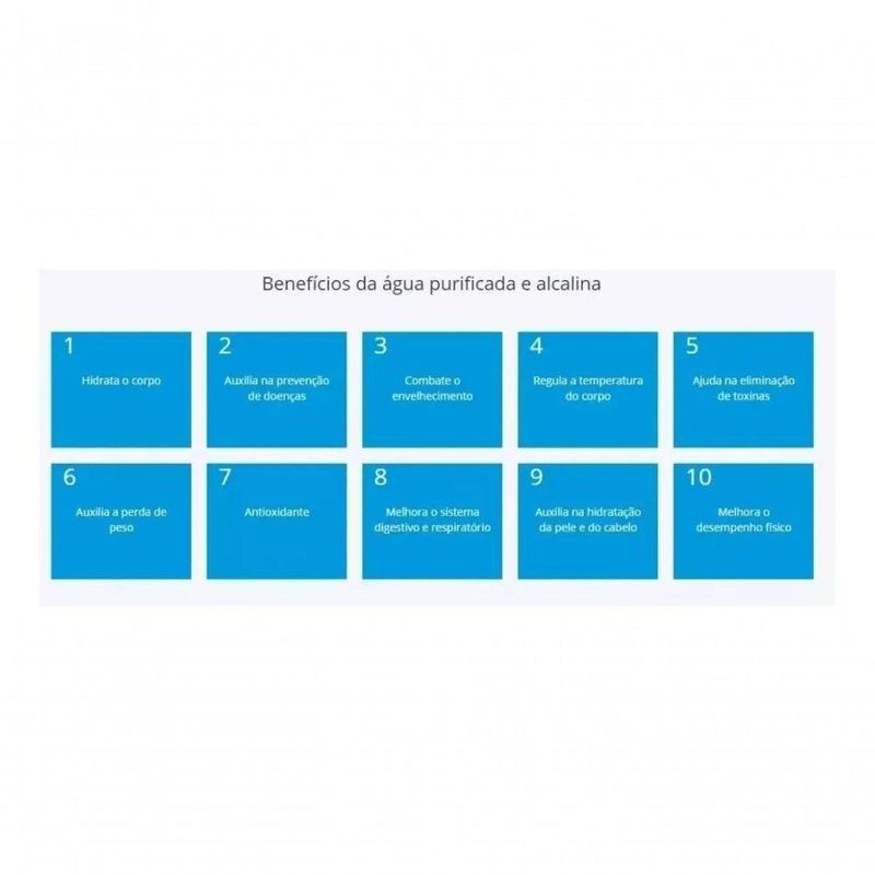 Purificador De Água Alcalina E Ozonizada Top Life Blueoxi Vermelho 220VO Purificador De Água Top Life BlueOxi 2 Em 1 é o único filtro do Brasil que proporciona Água alcalina e ozonizada em um só aparelho. Água alcalina: perfeita para consumo. O purificador de alta performance BlueOxi é responsável por purificar a Água da torneira (geralmente com pH neutro 7), deixando-a com pH alcalino entre 8.5 e 9.5. Isso garante uma Água 7x mais hidratante, com propriedades antioxidantes que ajudam a melhorar a estrutura óssea, eliminar toxinas e diminuir a retenção de líquidos. Tudo isso favorecendo a digestão e ajudando na absorção dos nutrientes dos alimentos.Água ozonizada: purificador poderoso Outra função exclusiva do BlueOxi é a purificação da Água com ozônio, conhecido por sua elevada propriedade bactericida. Acionando o botão ozonizador, o Filtro Top Life libera a substância na Água, tornando-a ideal para higienizar alimentos e objetos que necessitam de esterilização, reduzindo drasticamente uma série de elementos causadores de doenças, como impurezas, bactérias, vírus e fungos.Especificações TécnicasMarca: Top Life Linha: BlueOxi Alcalina Com Ozônio Tensão: 110V ou 220V Vermelho Função: Purificador de Água alcalina e ozonizada Vazão Máxima: 45 l/h Vida útil refil: 3.000 litros Volume Interno do Aparelho: 0,24 l Pressão de Trabalho: 3 A 40 m. C. A /29kPa A 390 kPa Eficiência de Retenção de Partículas: Classe D (15 a 30 m)PH: 8,5 a 9,3 (com pH de entrada 7) orp: Até 177 mv Ozônio gerado: Média de 0,25 mg/L Potência do Ozônio: 5 w Garantia: 6 meses Dimensões (AxLxP): 20,3 cm x 27,5cm x 21cm Peso: 1,55 kg Produto destinado a Água pré-tratada de acordo com a portaria 2914 ms.O Purificador De Água Top Life BlueOxi 2 Em 1 é o único filtro do Brasil que proporciona Água alcalina e ozonizada em um só aparelho. Água alcalina: perfeita para consumo. O purificador de alta performance BlueOxi é responsável por purificar a Água da torneira (geralmente com pH neutro 7), deixando-a com pH alcalino entre 8.5 e 9.5. Isso garante uma Água 7x mais hidratante, com propriedades antioxidantes que ajudam a melhorar a estrutura óssea, eliminar toxinas e diminuir a retenção de líquidos. Tudo isso favorecendo a digestão e ajudando na absorção dos nutrientes dos alimentos.Água ozonizada: purificador poderoso Outra função exclusiva do BlueOxi é a purificação da Água com ozônio, conhecido por sua elevada propriedade bactericida. Acionando o botão ozonizador, o Filtro Top Life libera a substância na Água, tornando-a ideal para higienizar alimentos e objetos que necessitam de esterilização, reduzindo drasticamente uma série de elementos causadores de doenças, como impurezas, bactérias, vírus e fungos.Especificações TécnicasMarca: Top Life Linha: BlueOxi Alcalina Com Ozônio Tensão: 110V ou 220V Vermelho Função: Purificador de Água alcalina e ozonizada Vazão Máxima: 45 l/h Vida útil refil: 3.000 litros Volume Interno do Aparelho: 0,24 l Pressão de Trabalho: 3 A 40 m. C. A /29kPa A 390 kPa Eficiência de Retenção de Partículas: Classe D (15 a 30 m)PH: 8,5 a 9,3 (com pH de entrada 7) orp: Até 177 mv Ozônio gerado: Média de 0,25 mg/L Potência do Ozônio: 5 w Garantia: 6 meses Dimensões (AxLxP): 20,3 cm x 27,5cm x 21cm Peso: 1,55 kg Produto destinado a Água pré-tratada de acordo com a portaria 2914 ms.