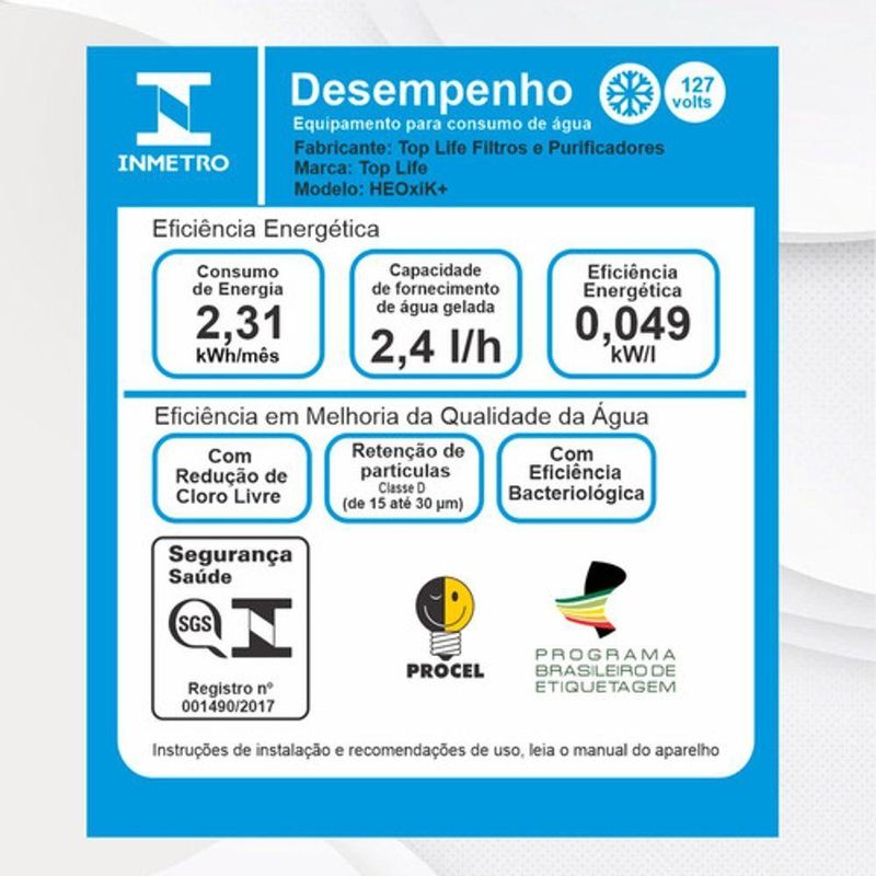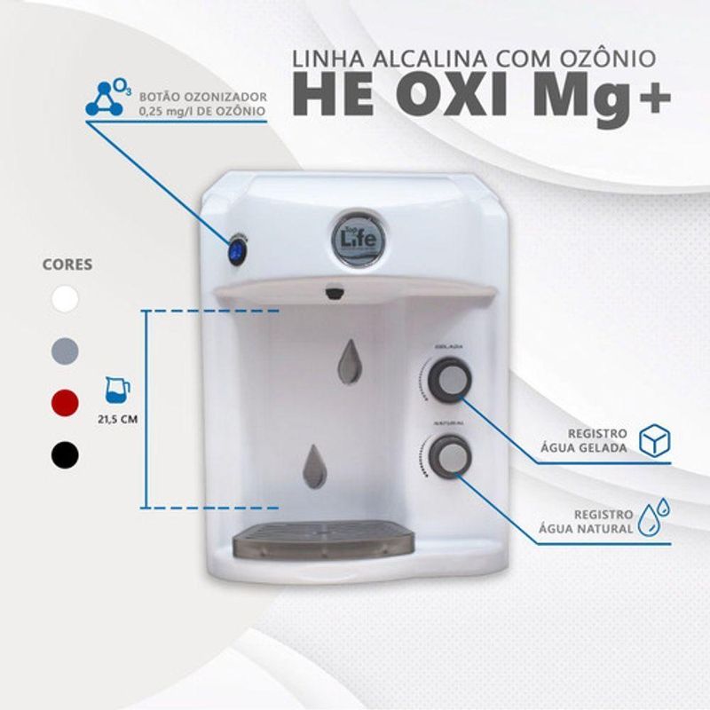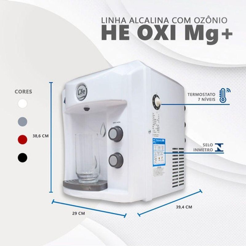 Purificador De água Alcalina Ionizada Ozônio E Magnésio Mg+ Fonte Alcalina Purificadores Você sabia que o magnésio é um mineral essencial para o funcionamento adequado do nosso organismo? Ao optar pelo nosso purificador He Oxi Mg+ (com adição extra de magnésio), você fornecerá ao seu corpo um nutriente valioso, fundamental para a saúde cardiovascular, muscular e nervosa. A água com magnésio é uma maneira simples e saborosa de complementar a ingestão diária desse mineral vital. Além de auxiliar na absorção de outros nutrientes, o magnésio tem sido associado a tais benefícios: 1. Auxilia no funcionamento muscular, 2. Auxilia no funcionamento neuromuscular, 3. Auxilia no metabolismo energético, 4. Auxilia no metabolismo de proteínas, carboidratos e gorduras, 5. Auxilia na formação de ossos e dentes, 6. Auxilia no equilíbrio dos eletrólitos, 7. Auxilia no processo de divisão celular. O purificador He Oxi Mg+ possui 3 vezes mais água magnesiana que as águas minerais comuns, trazendo mais saúde para sua vida. CARACTERÍSTICAS TÉCNICAS DO PURIFICADOR: - Capacidade de Refrigeração: 2,4 LITROS/HORA - Eficiência Bacteriológica: APROVADO - Eficiência de Retenção de Partículas: APROVADO - Eficiência de Redução de Cloro Livre: APROVADO - Refrigeração: Sim – REFRIGERADO POR COMPRESSOR - Consumo de Energia: 127V (2,31kWh/Mês) - Consumo de Energia: 220V (2,28 kWh/Mês) - Tensão: 127V ou 220V - Potência: 100W - Amperagem: 0,78 A - Frequência - Mercado Nacional: 60Hz - Garantia: 1 ano - Vida Útil do Refil: 3.000 litros ou 12 meses - Uso Residencial: SIM - Uso Empresarial: SIM - Vida Útil do Produto: 10 anos (em média) - Sem Embalagem (Frente x Altura x Profundidade) CM: 29,0 x 38,6 x 39,4 - Com Embalagem (Comprimento x Largura x Altura) Cm: 43,5 x 34 x 41 - Peso Líquido: 11 kg - Peso Bruto: 12,55 kg - Gás Refrigerante: R 134 A - Vazão Máxima: 60 l/h - Grau de Proteção: IPX0 - Eficiência Energética: 127 V (0,049kW/L) - Eficiência Energética: 220 V (0,05kW/L) - Pressão de Trabalho: 0,049 Mpa a 0,39 Mpa (de 5 a 40 metros de coluna de água) CARACTERÍSTICAS TÉCNICAS DA VÁLVULA DE PRESSÃO: - Material: Injetado em ABS. - Conexão de mangueira entrada 1/4, saída de 1/4 - Cor: Branca FUNÇÃO: - Controlar de pressão do fluído (água) para evitar fenômeno golpe de aríete POR QUE DEVO COMPRAR ESSE PURIFICADOR? - Diferentemente dos demais modelos do mercado, os purificadores de água TOP LIFE não são feitos de plástico, mas sim de aço, por isso são um bem durável, capazes de resistir por pelo menos uma década de uso contínuo e diário. - O purificador HE OXI Mg+ da TOP LIFE não é apenas um filtro, ele é uma super máquina capaz de deixar a água purificada, alcalina (com adição extra de Magnésio), ionizada, refrigerada e ozonizada. - Este purificador pode trazer uma série de benefícios para saúde das famílias, sobretudo por meio da água alcalina rica em Magnésio, que auxilia no fortalecimento dos ossos, relaxamento muscular, regulação do humor e auxilia nas enzimas digestivas. - O modelo HE OXI Mg+ tem um botão que aciona o ozonizador e assim mistura na água o poderoso gás ozônio, importante agente para redução de bactérias e de resíduos de agrotóxicos na superfície de alimentos crus. - Todos os modelos de purificadores de água da TOP LIFE são aprovados pelo INMETRO (Instituto Nacional de Metrologia, Qualidade e Tecnologia), sendo assim, tem eficiência e qualidade atesta e comprovada. - Melhor relação custo-benefício do Brasil: baixo consumo de energia, maior capacidade de fornecimento de água gelada, melhor eficiência energética, redução de cloro livre, retenção de partículas e com eficiência bacteriológica aprovada. Produto altamente qualificado para seu conforto e qualidade de vida. - Menor consumo de energia elétrica seja para residência ou comércio, isso porque o motor compressor do aparelho atua com maior eficiência energética, destacando entre os mais econômicos do mercado. ITENS INCLUSOS NA EMBALAGEM: - 1x Purificador Água Alcalina Refrigerada c/ Ozônio (HE OXI Mg+) - 1x bucha T de Conexão - 1 m de Mangueira Uv - 2x Suportes de Parede - 2x Buchas - 2x Parafusos para Fixação - 1x Manual de Instrução purificador de agua top life, purificador de agua top life alcalina ozonio, purificador top life, purificador agua ozonio, purificador de agua com ozonio, purificador de agua alcalina purificador agua alcalina, filtro agua alcalina ozonio, filtro alcalinizante ozonio top life, Filtro Purificador Agua Ozonizada Alcalina Ionizada, Filtro Purificador Água Alcalina Ionizada Com Ozônio Ph 9.5, Purificador Agua Gelada Alcalino Com Ozonio Top Life, Purificador Agua Ozonizada Alcalina Ionizada Top Life, top life, purificador de agua top life, purificador de agua toplie, filtro top life, top life new oxi he health energy,
