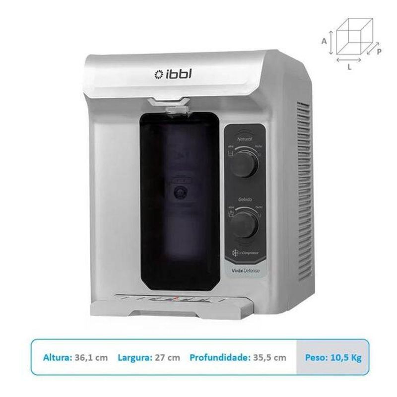 Purificador De Água IBBL Viváx Defense Com Compressor Prata 110VPurificador de água ibbl vivax defense prata o purificador de água viváx defense é a escolha perfeita para quem procura por uma hidratação segura e prioriza o design clean em sua casa. Com água natural e gelada, refrigeração por eco compressor e tamanho versátil, se adapta até aos ambientes com menos espaço, tornando-o ideal para apartamentos e casas produto em conformidade com regulamentação do inmetro. Todas as informações técnicas divulgadas são de responsabilidade exclusiva do fabricante/fornecedor. A cor do produto pode variar de acordo com as configurações do seu monitor.Como Funciona o Sistema de Filtragem?Possui Filtro IBBL Protection (CZ+7) que assegura água pura e saudável: retém partículas, reduz cloro, elimina odores e sabores indesejados e contribui para o controle bacteriológico. A substituição do refil é fácil e rápida com o sistema ?Girou, Trocou?.Design Clean e Água PuraPossui Filtro IBBL Protection (CZ+7) que assegura água pura e saudável: retém partículas, reduz cloro, elimina odores e sabores indesejados e contribui para o controle bacteriológico. A substituição do refil é fácil e rápida com o sistema ?Girou, Trocou?.Moderno e EleganteSeu maior diferencial é o compressor, que gela a água com mais rapidez e eficiência, perfeito para quem gosta de água bem gelada. Compacto, com linhas modernas e acabamento clean, se adapta a qualquer ambiente.EAN 127v: 7898002568382EAN 220V: 7898002568399CapacidadeVolume Interno do Aparelho (L): 1,3Capacidade de Fornecimento de Água Gelada (L/h) 0,94Temperatura de Resfriamento: 10°C / 50oFVazão Máxima Recomendada (L/h): 60Pressão de Trabalho (m.c.a./kPa): 5 a 50 m.c.a. 49,03 a 490,33 kPaRefrigeração: CompressorEficiência em Melhoria da Qualidade da ÁguaTipo de Filtro:- CZ+7Eficiência de Retenção de Partículas (µm): Classe: C = 5 aBacteriostático: simEficiência EnergéticaConsumo de Energia (kWh/mês): 8,2Eficiência Energética (kW/L): 0,0096Dimensões Sem Embalagem (A x L x P) mmSem Embalagem: 361 x 270 x 355Dimensões Com Embalagem (A x L x P) mmcom Embalagem: 378 x 284 x 374Peso Bruto (kg): 10,9Garantia 12 mesesPurificador de Água IBBL Viváx Defense com Compressor Prata 127V