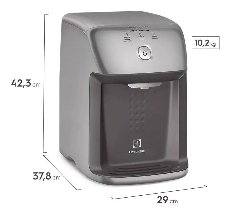 VOLTAGEM 127V COR CINZA O Purificador de Água PH41X da Electrolux é a solução ideal para quem busca qualidade e praticidade na hora de beber água. Com um design compacto, suas dimensões de 37,8 cm de profundidade, 42,3 cm de altura e 29 cm de largura permitem que ele se encaixe facilmente em qualquer ambiente, seja doméstico ou comercial. Este purificador possui um fluxo máximo de 45 litros por hora, garantindo água filtrada e pronta para o consumo a qualquer momento. Com um sistema de filtragem em três etapas, ele retém impurezas e cloro, proporcionando uma água mais pura e saudável para você e sua família. Fabricado em plástico resistente, o PH41X tem uma vida útil de um ano, oferecendo durabilidade e eficiência. Embora não seja portátil, sua montagem simples facilita a instalação em diversos locais, tornando-o uma escolha prática para quem valoriza a qualidade da água.