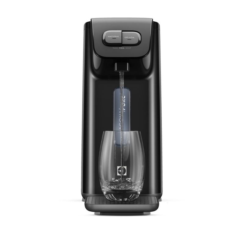 O Purificador de Água Electrolux Efficient (Gelada, Fria e Natural) Preto é a combinação perfeita entre saúde e modernidade, e conta com um filtro que retém as impurezas, melhorando a qualidade da água. Com o purificador você tem certeza de que sua água estará sempre fresca e livre de impurezas. Ideal para beber ou cozinhar todos os dias, de forma ainda mais prática. A Tecnologia Acqua Pure garante alta eficiência na filtragem através de um filtro composto por carvão ativado com íons de prata e uma barreira de polipropileno que filtra as impurezas sólidas. Inibe o desenvolvimento de bactérias*, retém partículas de 5 a 15µm (partículas invisíveis a olho nu)** e reduz em até 75%** o excesso de cloro livre na água, além de reduzir odores e sabores. Evite o descarte de garrafas pet no meio ambiente com a economia até 2000 garrafas plásticas de 1,5L***. A troca de refil é fácil e simples. Quando necessário, uma luz se acenderá no painel. A recomendação é que a troca seja feita a cada 6 meses, utilizando um filtro original para garantir o desempenho do purificador. Uma das facilidades do Purificador de Água Electrolux Efficient é que você mesmo pode fazer sua limpeza e manutenção, sem a necessidade de acionar um técnico. Além disso, o purificador dispensa o uso de pilhas e possui design compacto e versátil, com a altura ideal para diversos recipientes, como copos, panelas e jarras. Ocupa menos espaço e pode ser instalado na parede.