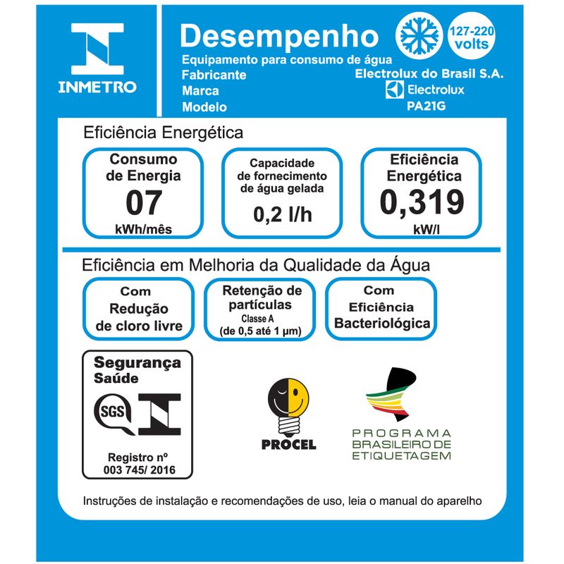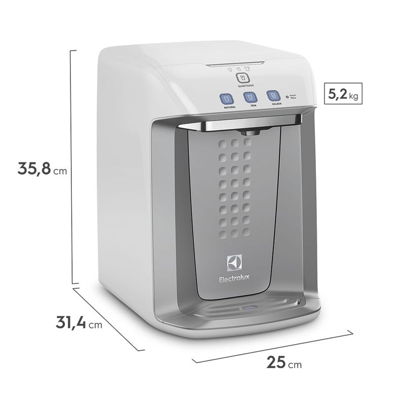 Desenvolvido para oferecer uma vida mais saudável a você e toda sua família, o Purificador PA21G Electrolux proporciona água livre de impurezas, cloro e odores. O aparelho possui um design moderno que se destaca pelo painel Blue Touch com todas as funções bem sinalizadas e sensíveis ao toque, além de contar com eficiente sistema eletrônico de refrigeração que permite selecionar até três temperaturas. Com classificação máxima recebida pelo Inmetro (P1/C1), o filtro Acqua Clean tem longa duração e aciona um alerta automático quando estiver na hora de trocar. O Purificador PA21G ainda conta com bandeja flexível, controle de porções de água e fluxo contínuo ou controlado, dependendo da sua preferência.